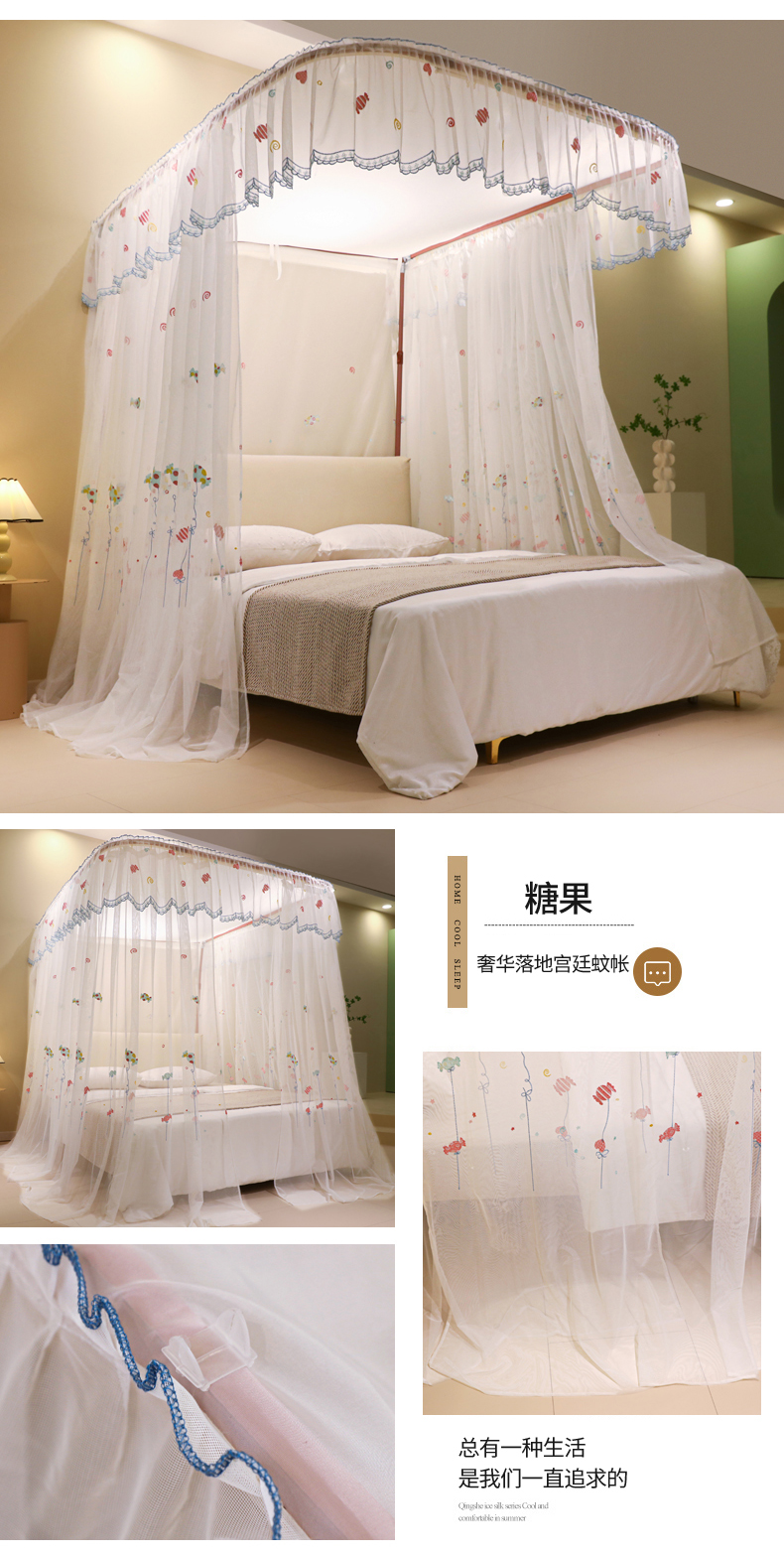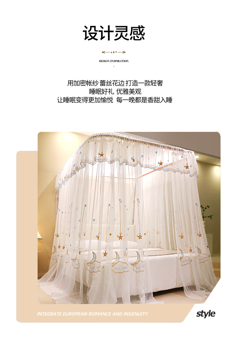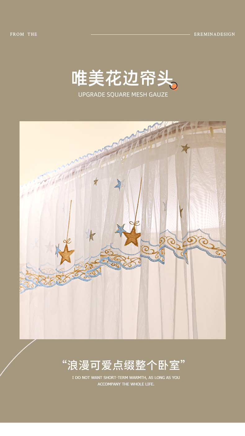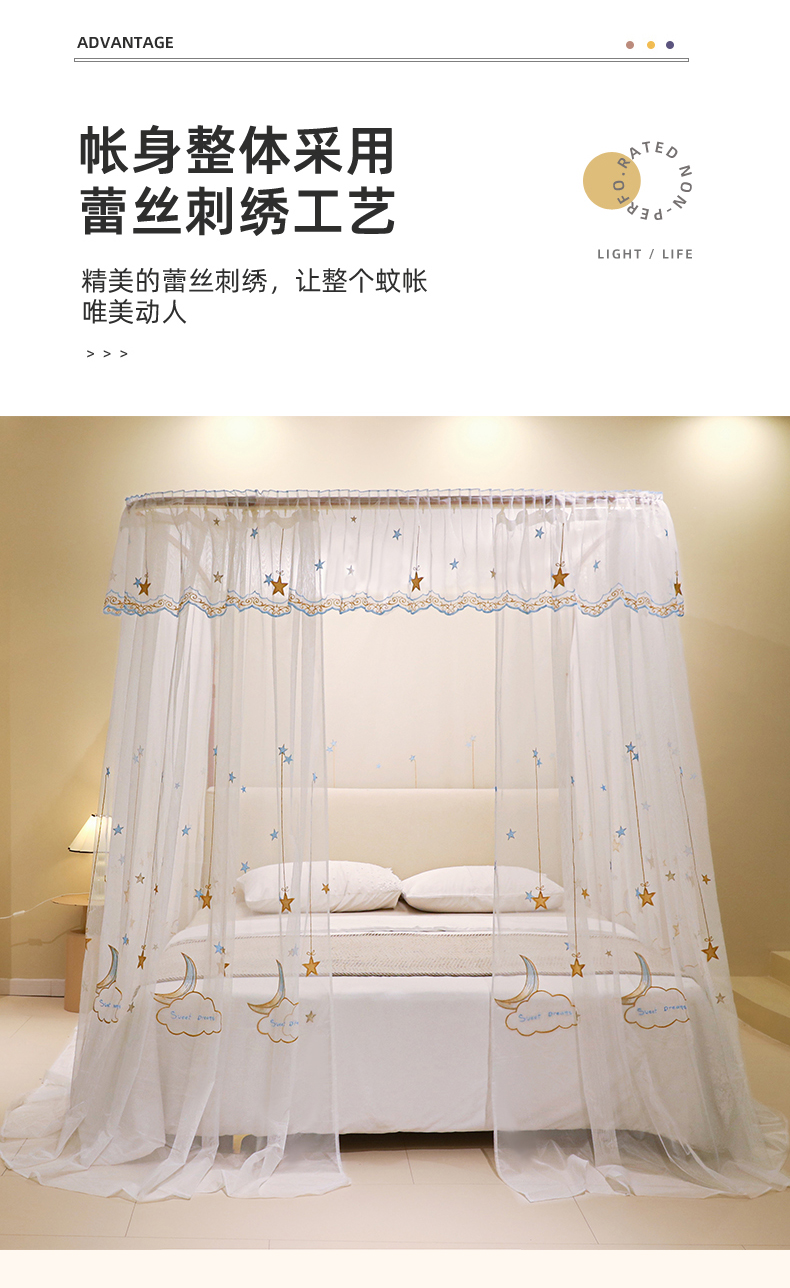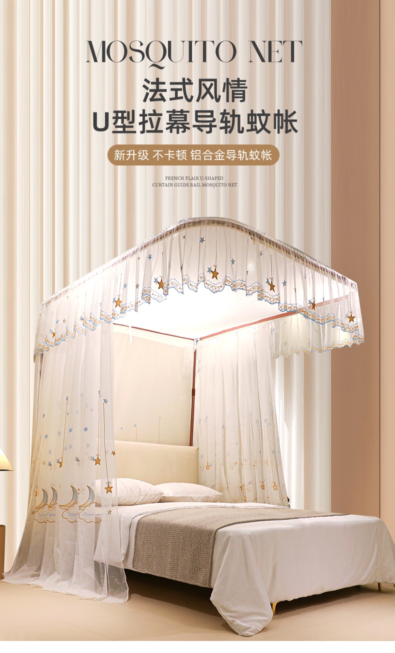 自然醒导轨窗帘布绣花款蚊帐 轻奢尊享HH