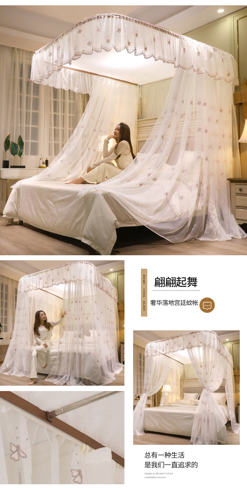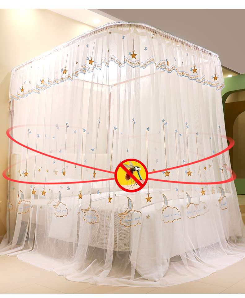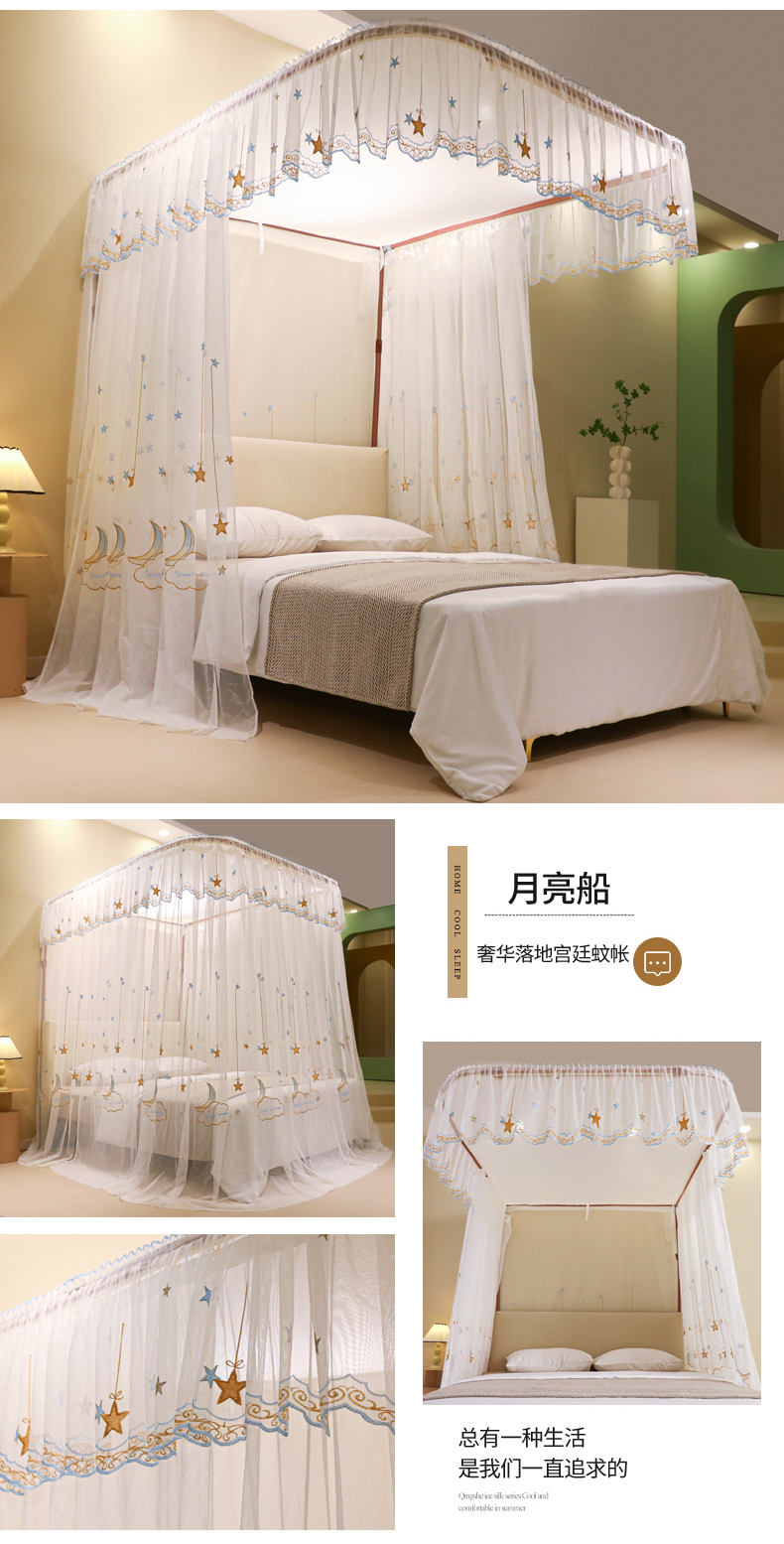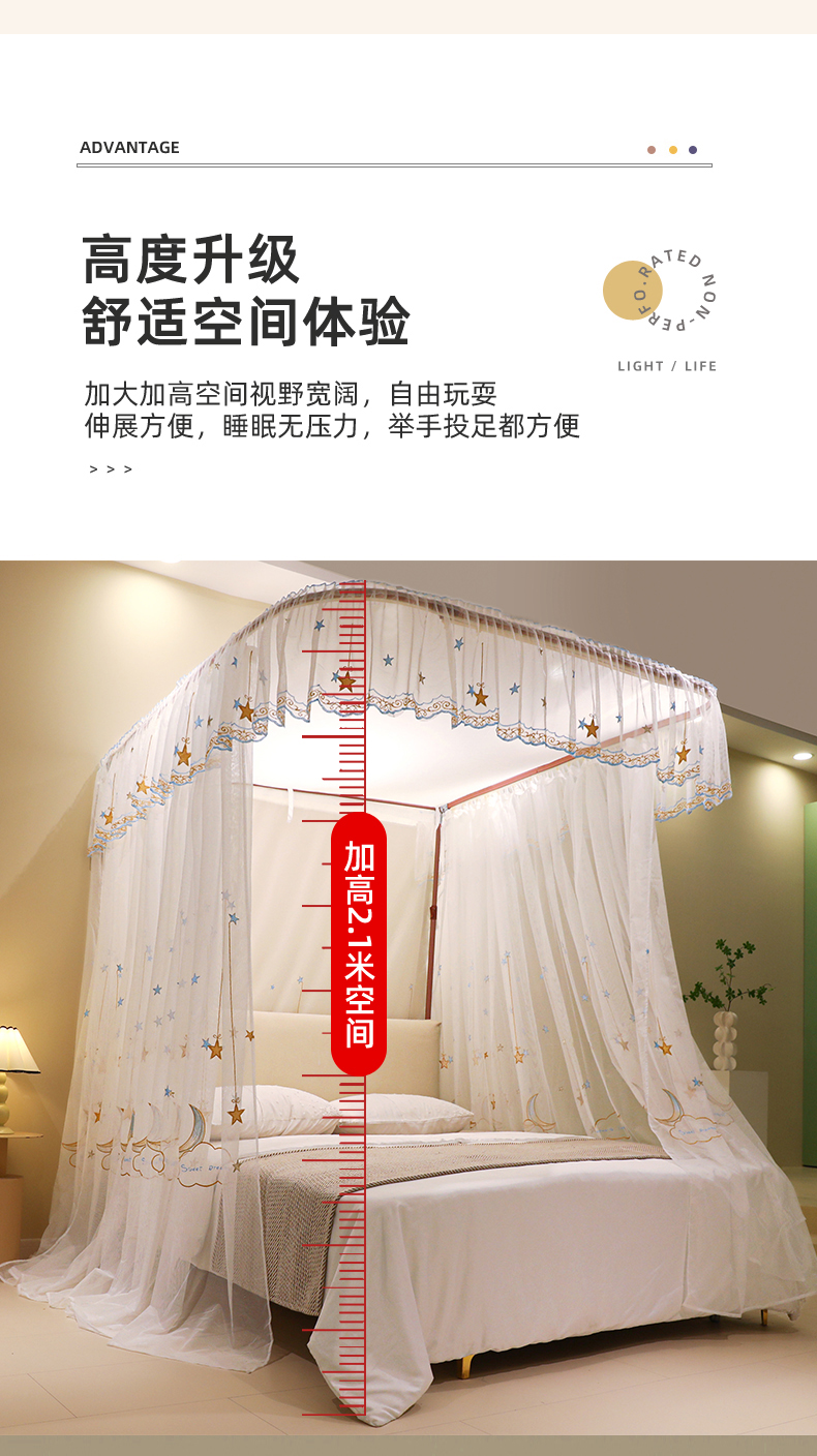 自然醒导轨窗帘布绣花款蚊帐 轻奢尊享HH