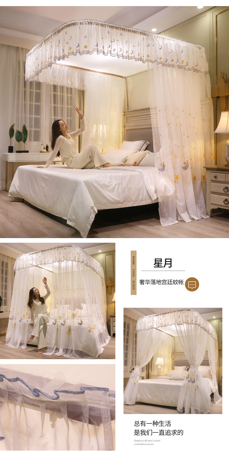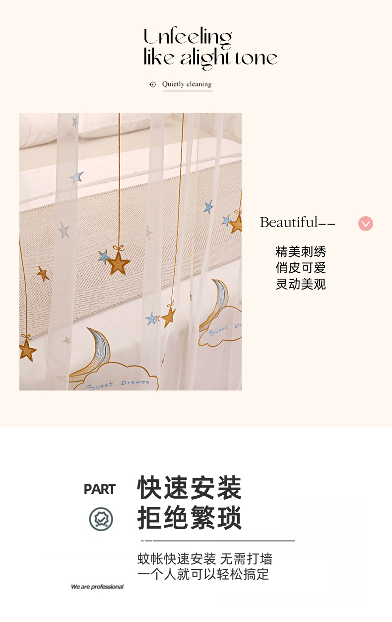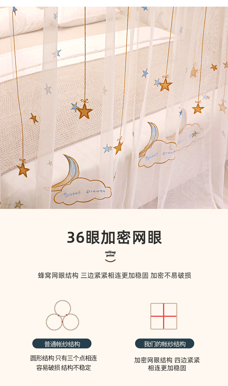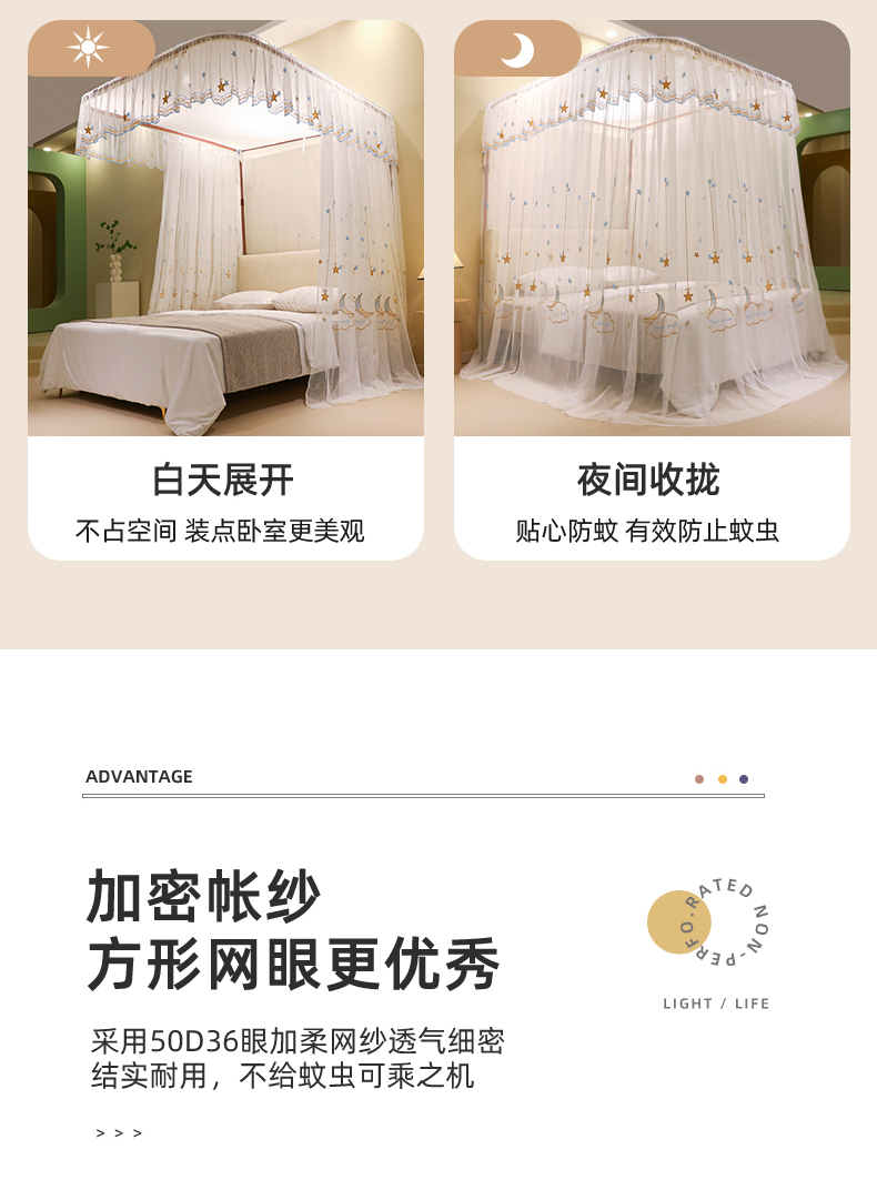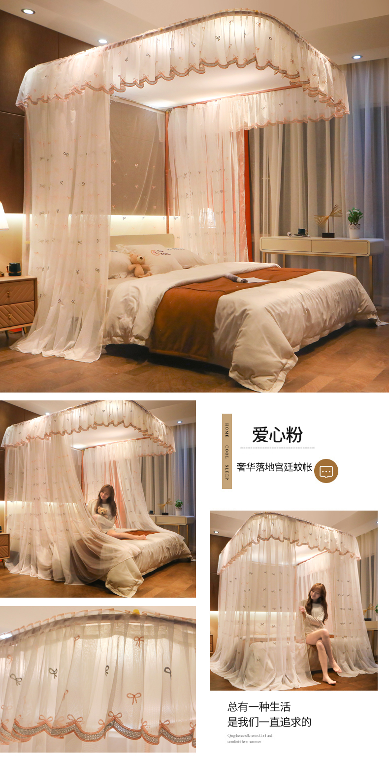 自然醒导轨窗帘布绣花款蚊帐 轻奢尊享HH