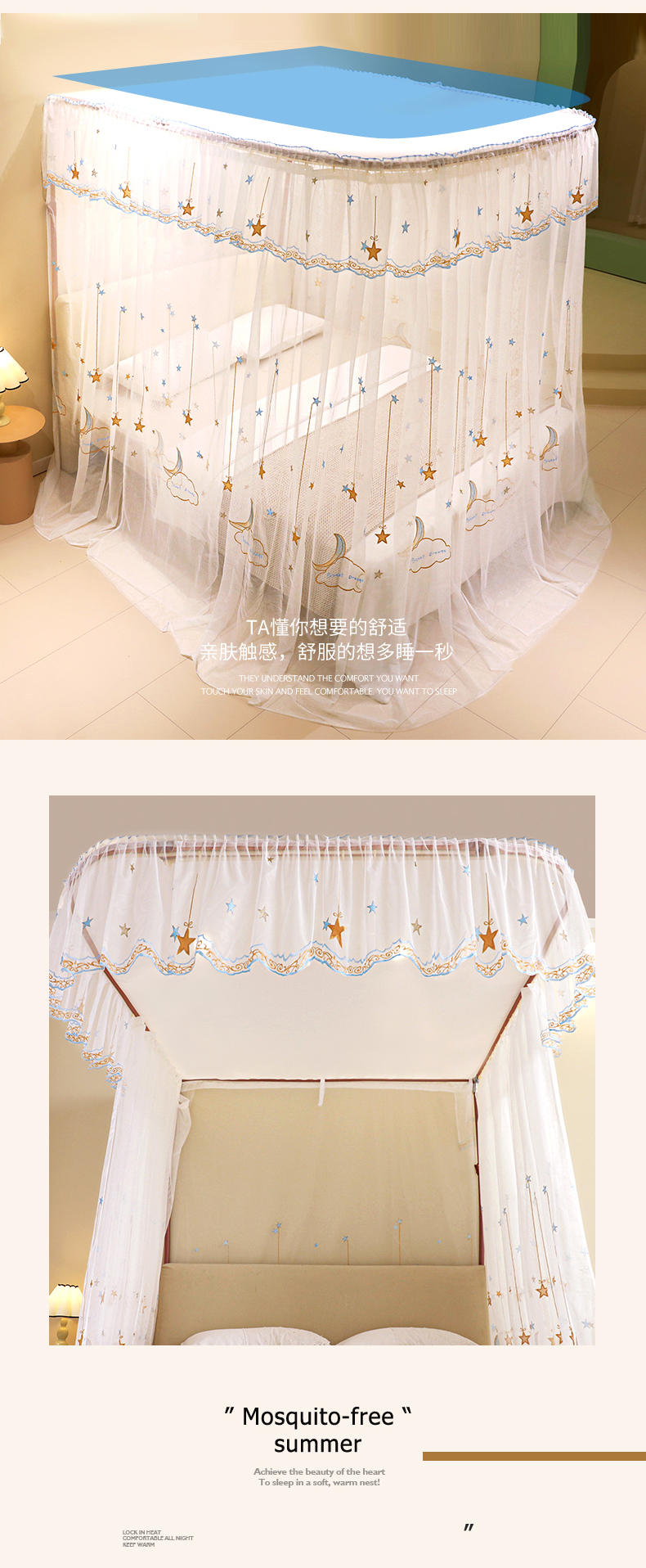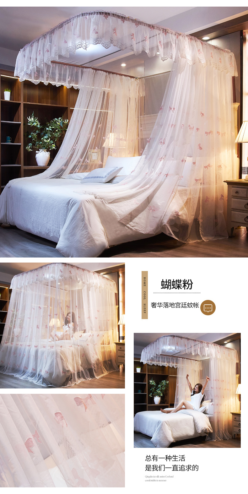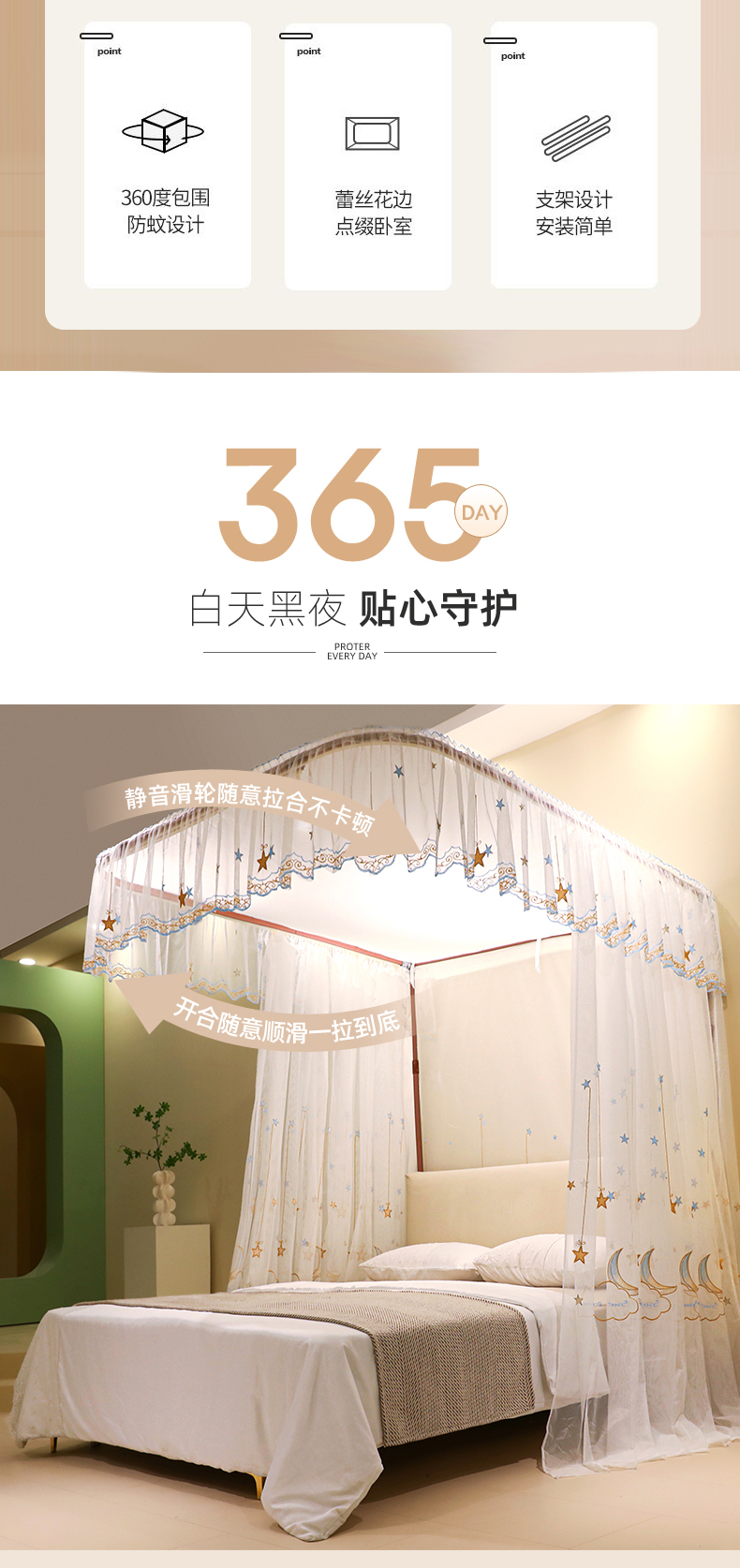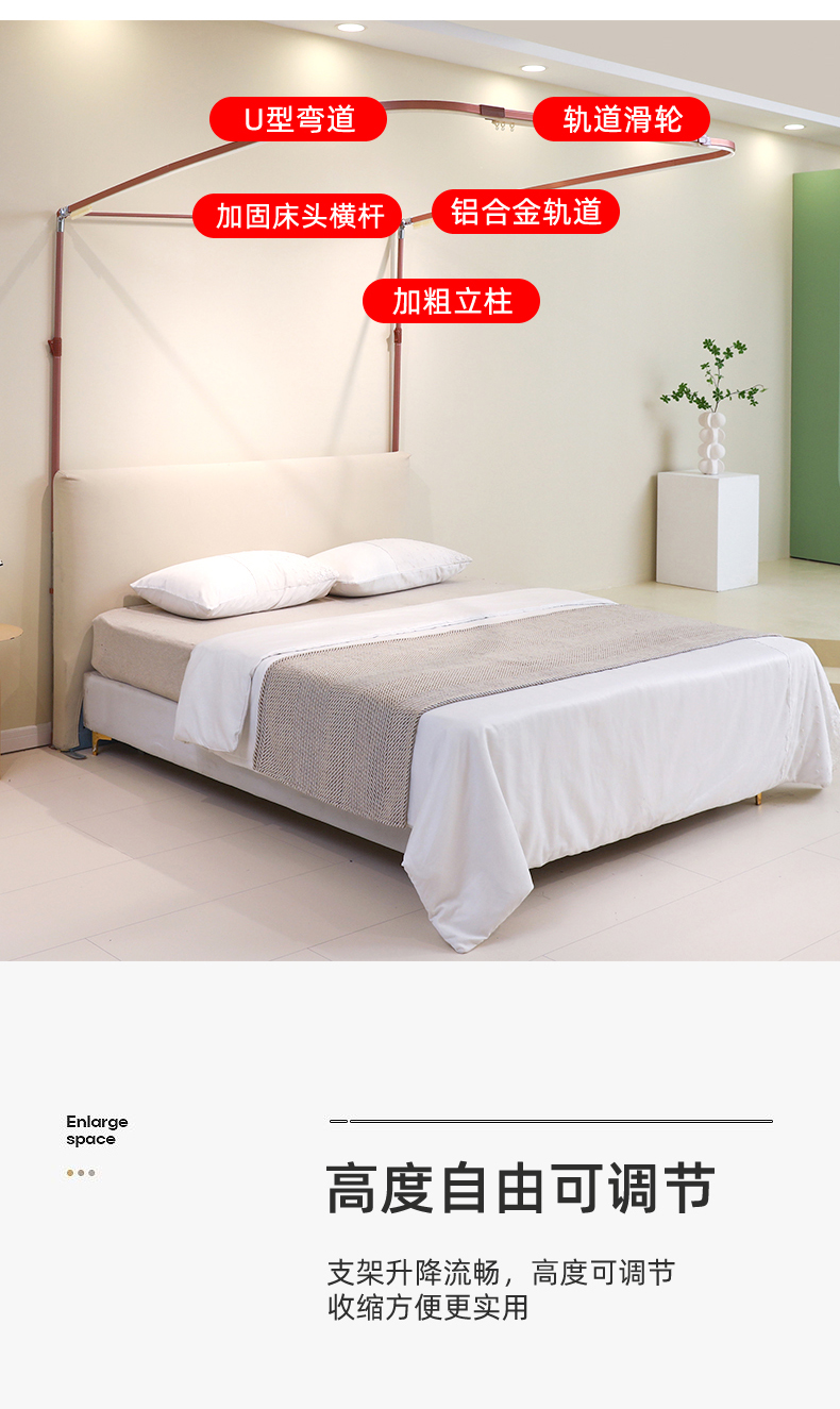 自然醒导轨窗帘布绣花款蚊帐 轻奢尊享HH