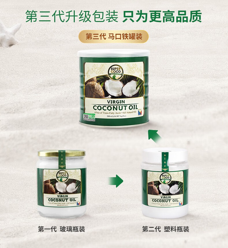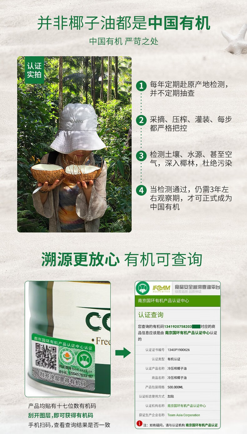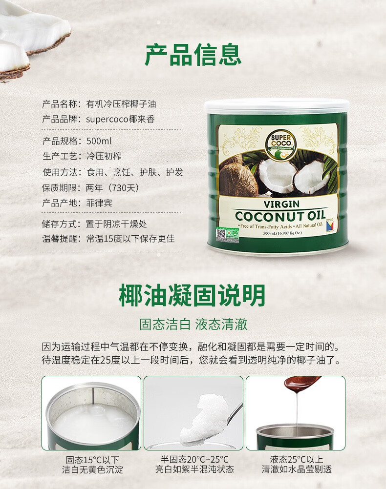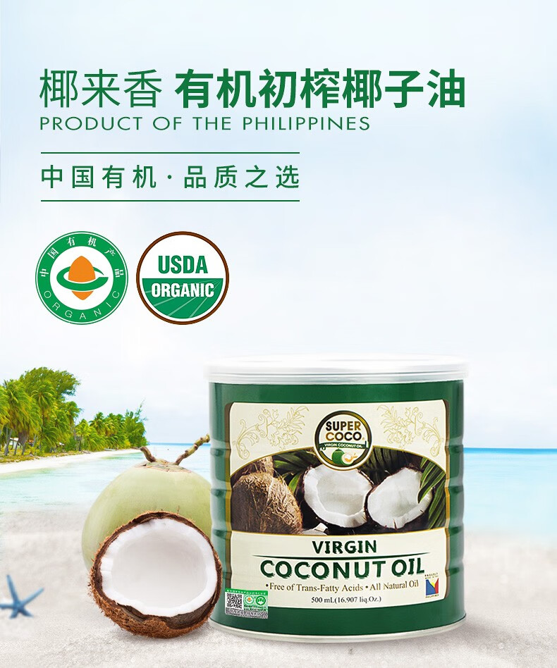 有机椰子油 菲律宾进口 冷压初榨椰子油 500ml罐装