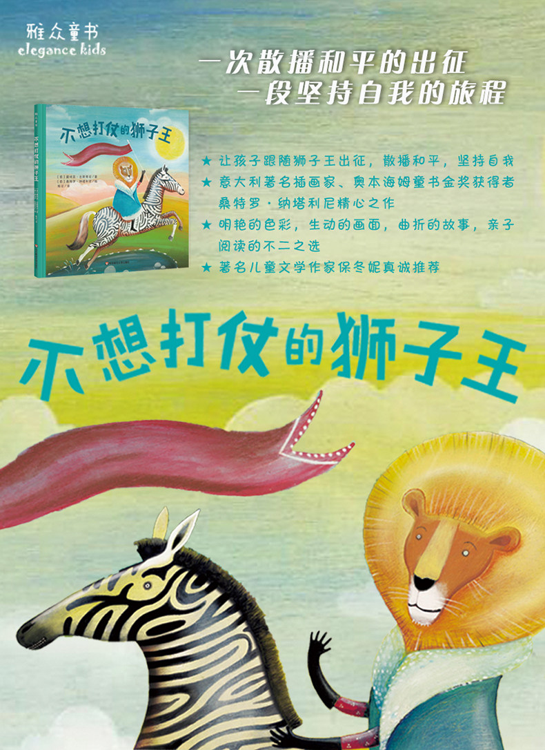 ★ 不想打仗、热爱和平的狮子王以出征散播和平的理念,教导孩子们不同的生物、种群和平共处的世界才是美好的世界。