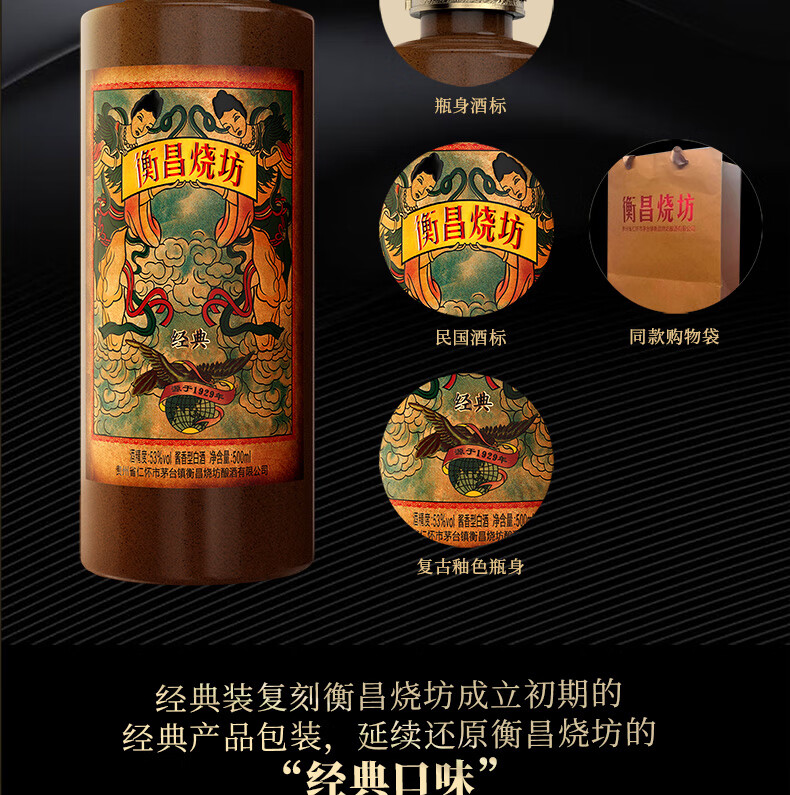 衡昌烧坊 经典装53度 贵州酱香型白酒500ml单瓶装