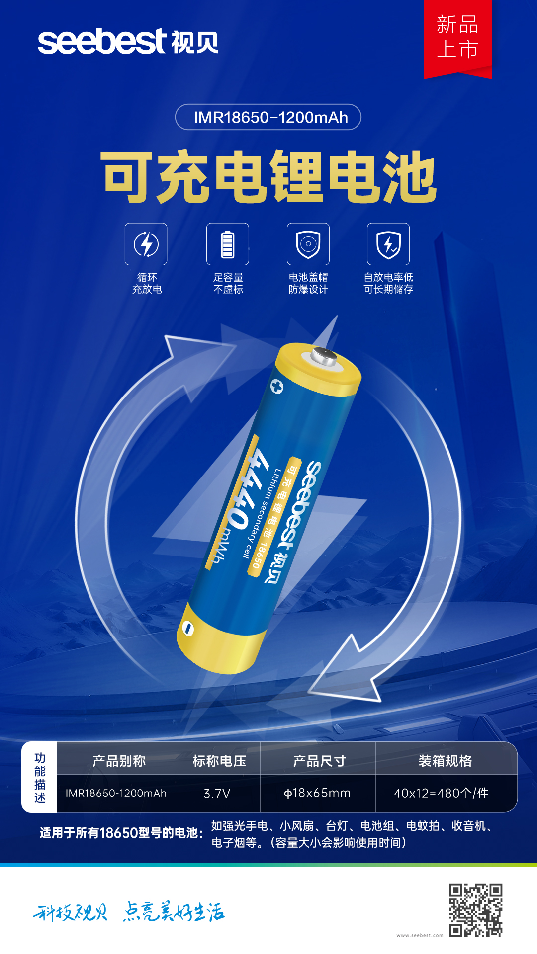 18650-1200mAh 可充电锂电池