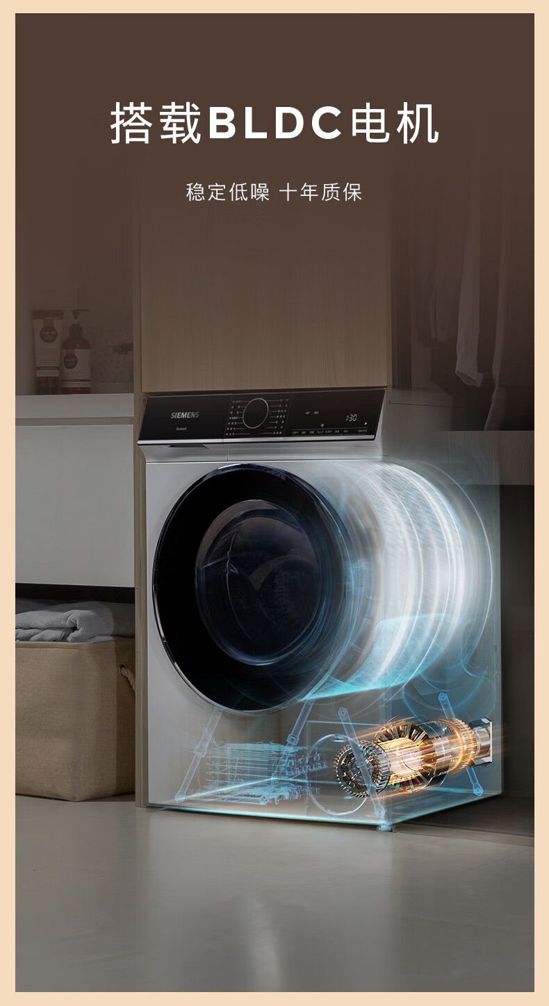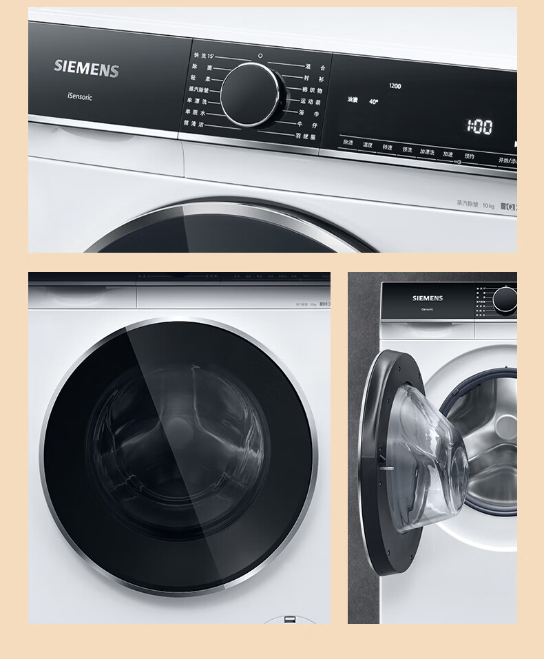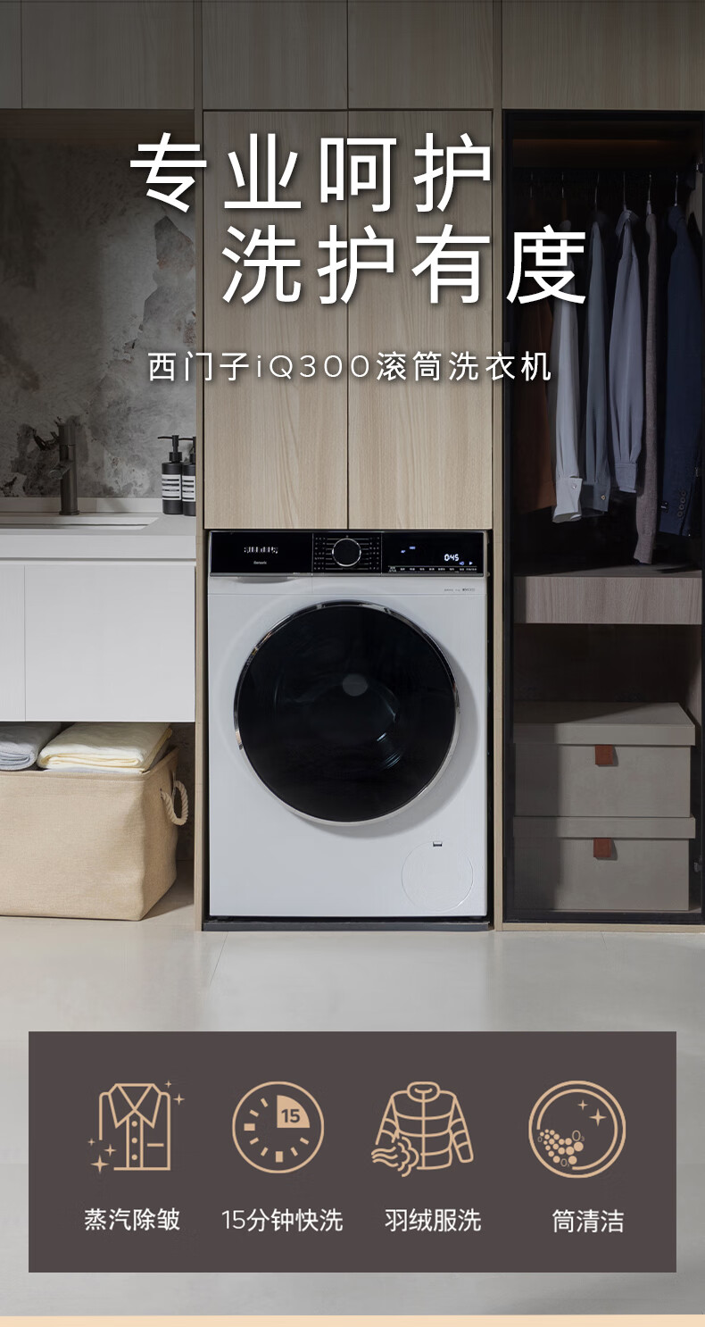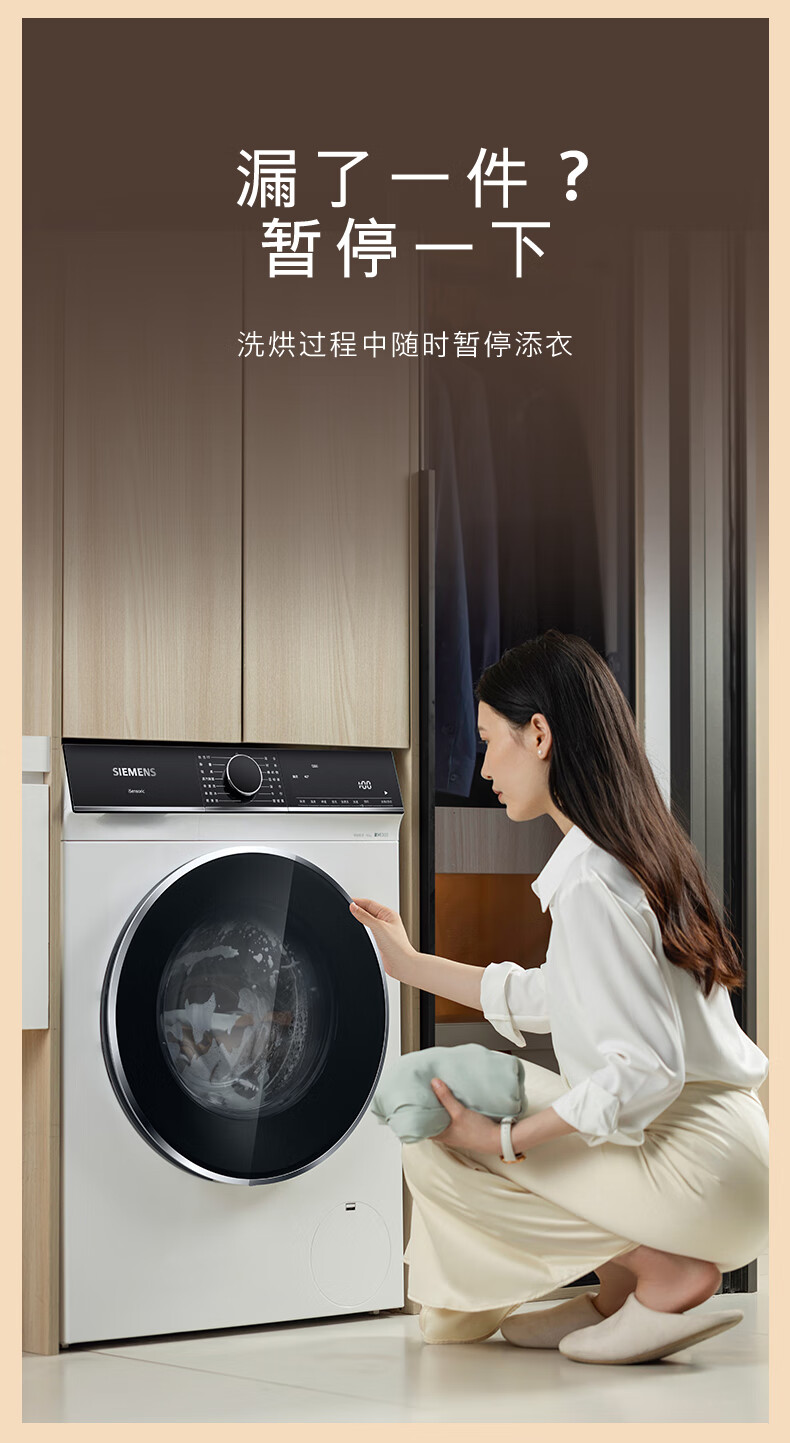 西门子(SIEMENS)10公斤大容量全自动家用滚筒洗衣机 1.08洗净比羽绒服洗蒸汽除皱强效除菌螨筒自洁白色 WB25XLZ08W