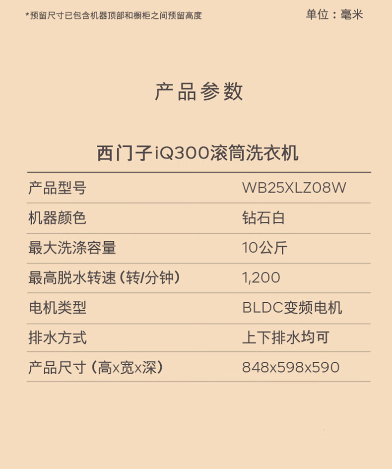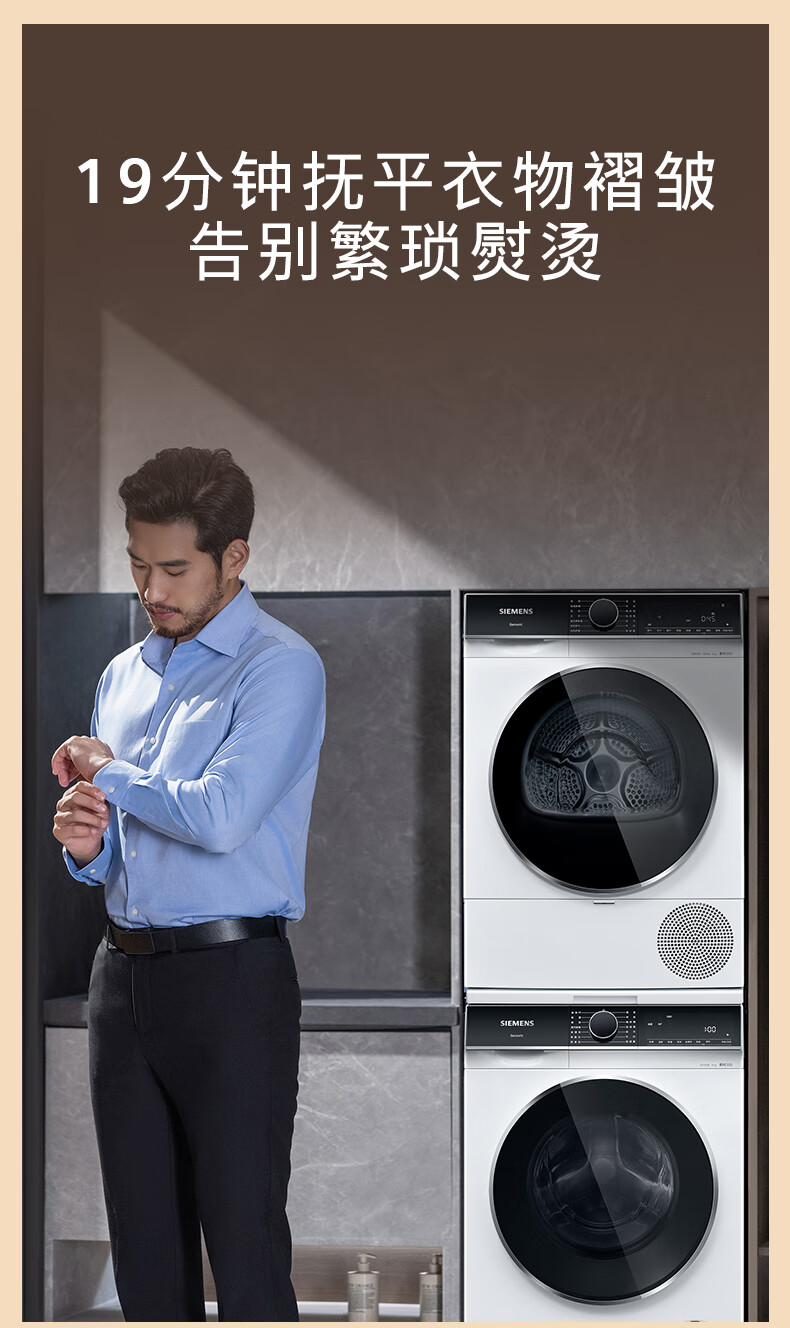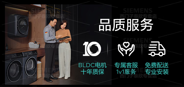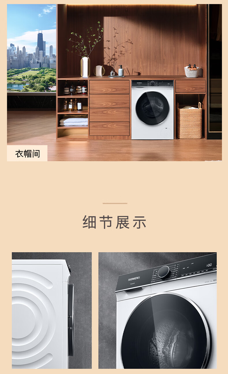 西门子(SIEMENS)10公斤大容量全自动家用滚筒洗衣机 1.08洗净比羽绒服洗蒸汽除皱强效除菌螨筒自洁白色 WB25XLZ08W