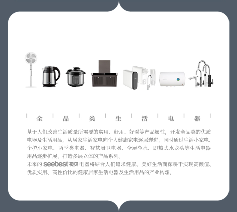 厦门视贝科技有限公司是集产品自主设计,研发,生产,销售于一体的高科技企业。拥有80000平方米的制造厂房,核心员工2000多人。产品线涵盖照明、电工,卫浴,线路,集成风暖等领域。