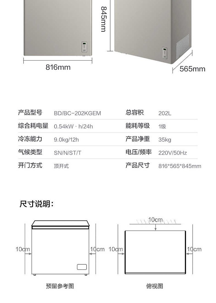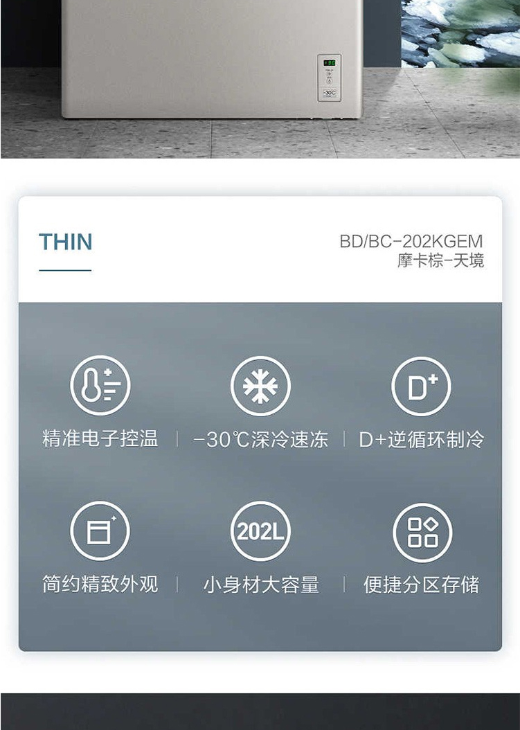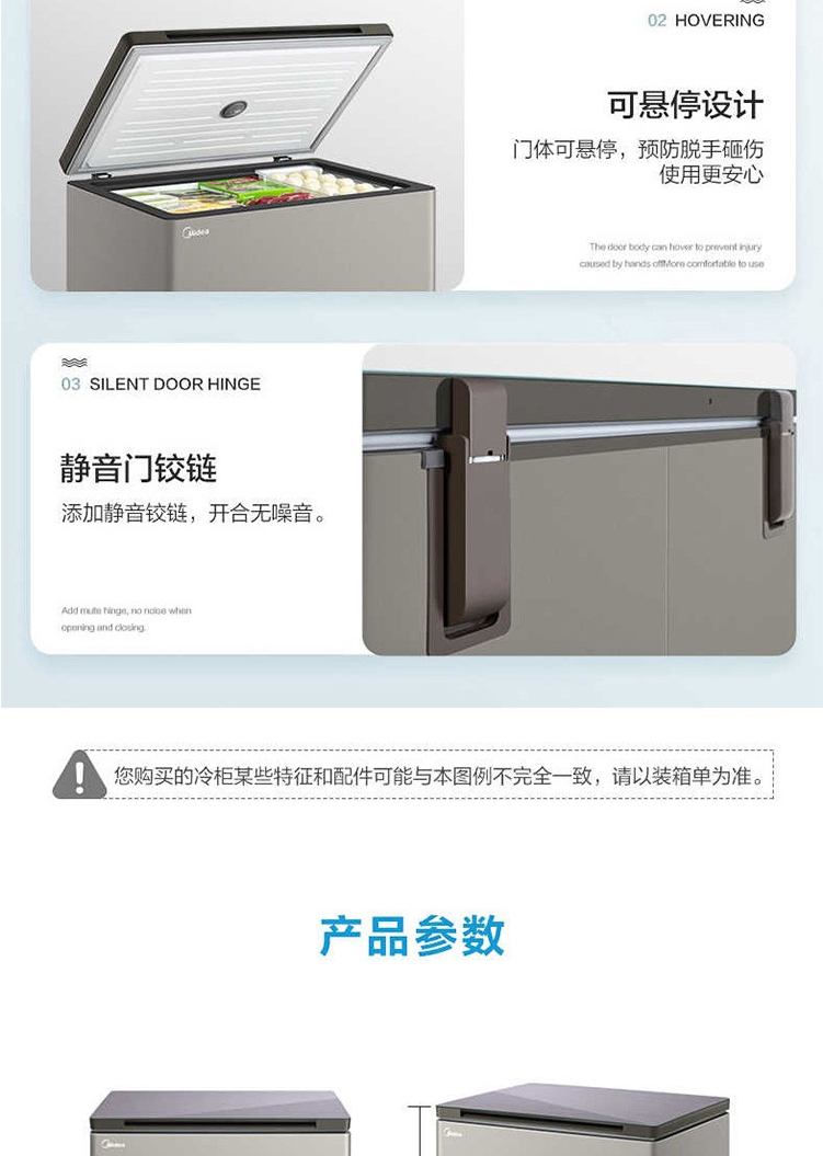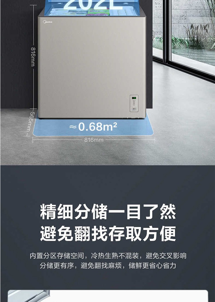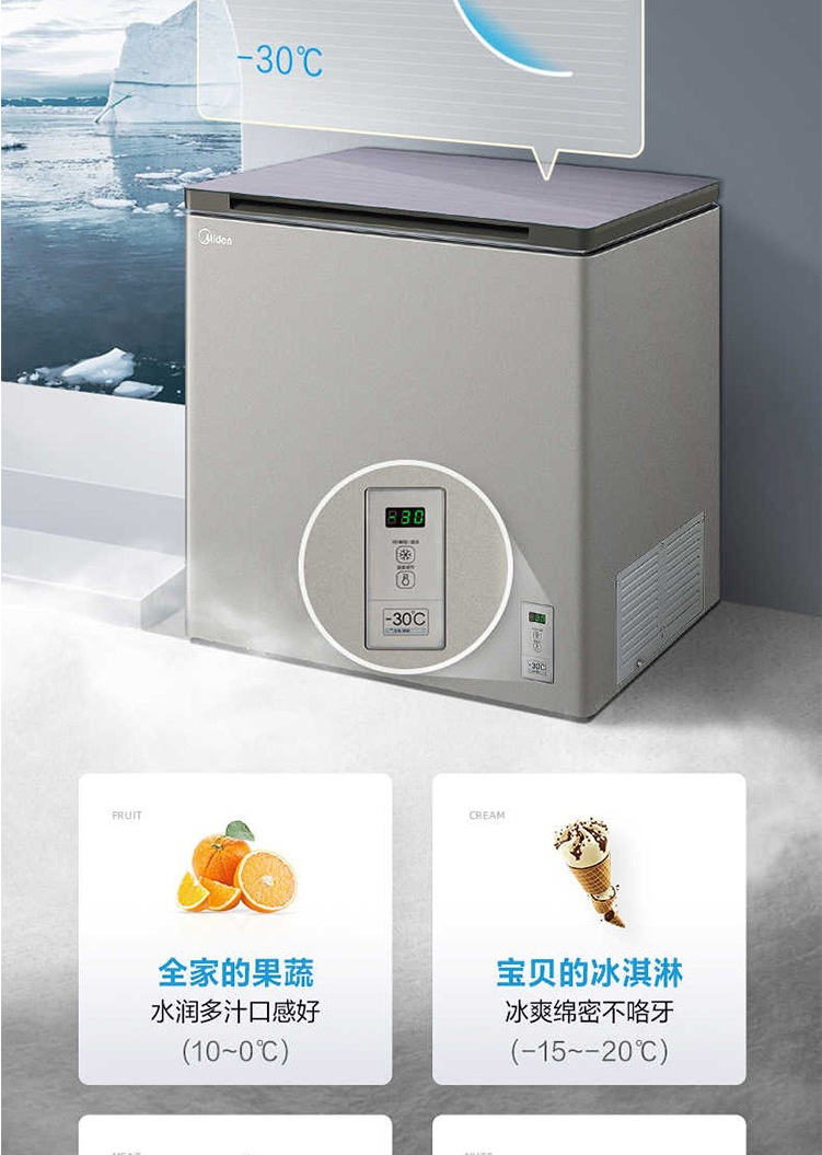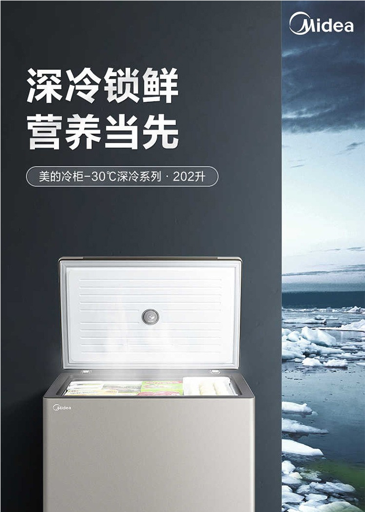 美的(Midea)202升顶开门单温柜冷柜 电子控温 深冷速冻 净味阻霜泰坦银BD/BC-202KGEM