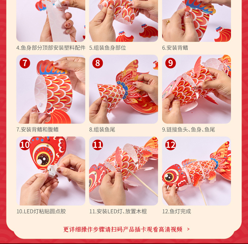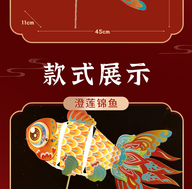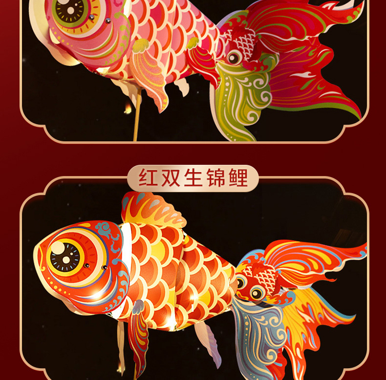 内蒙古包邮!龙年元宵节【儿童diy锦鲤鱼灯 手工制作】pvc手持 发光金鱼小灯笼