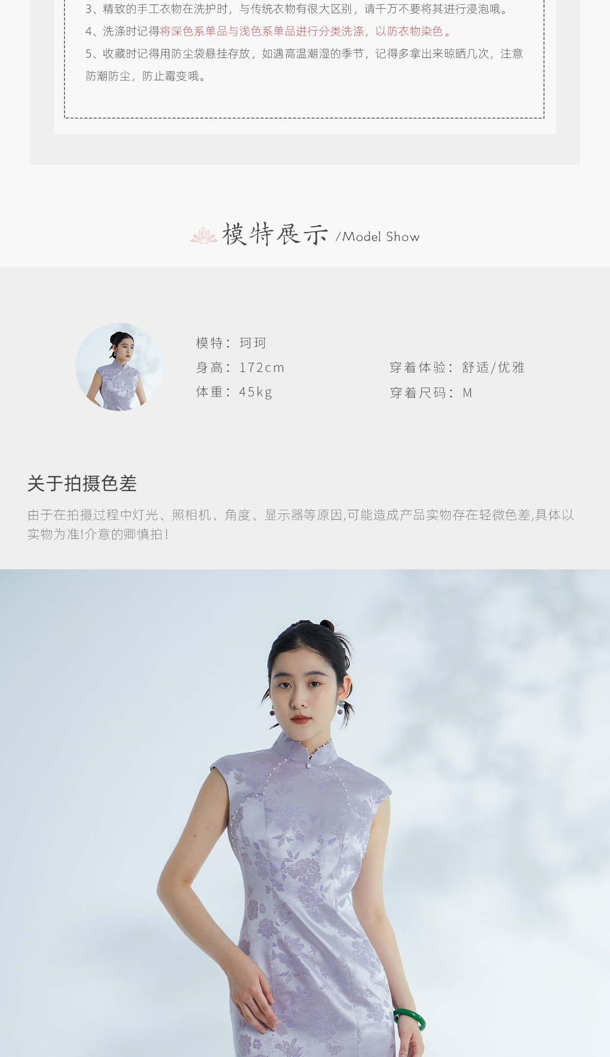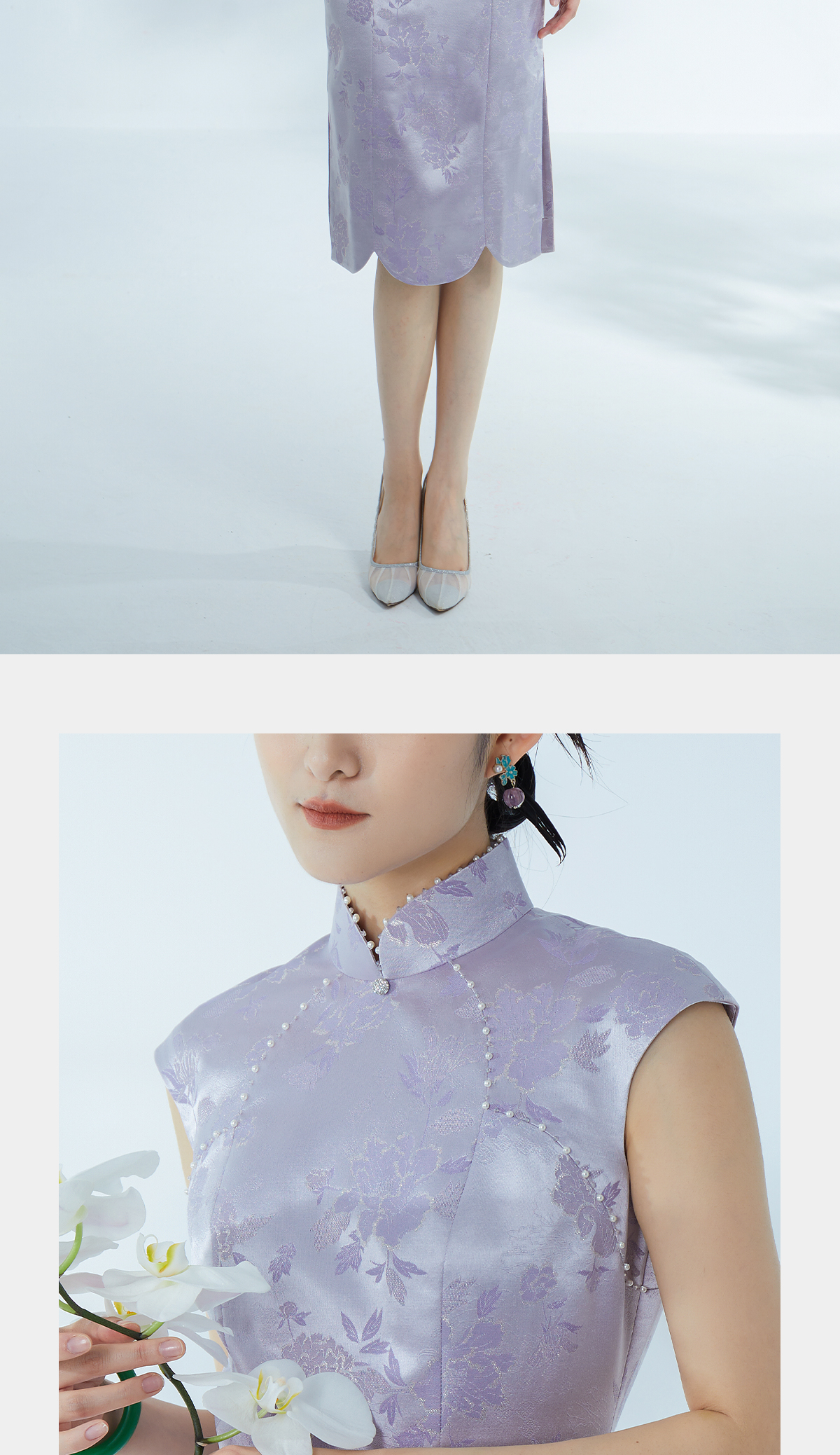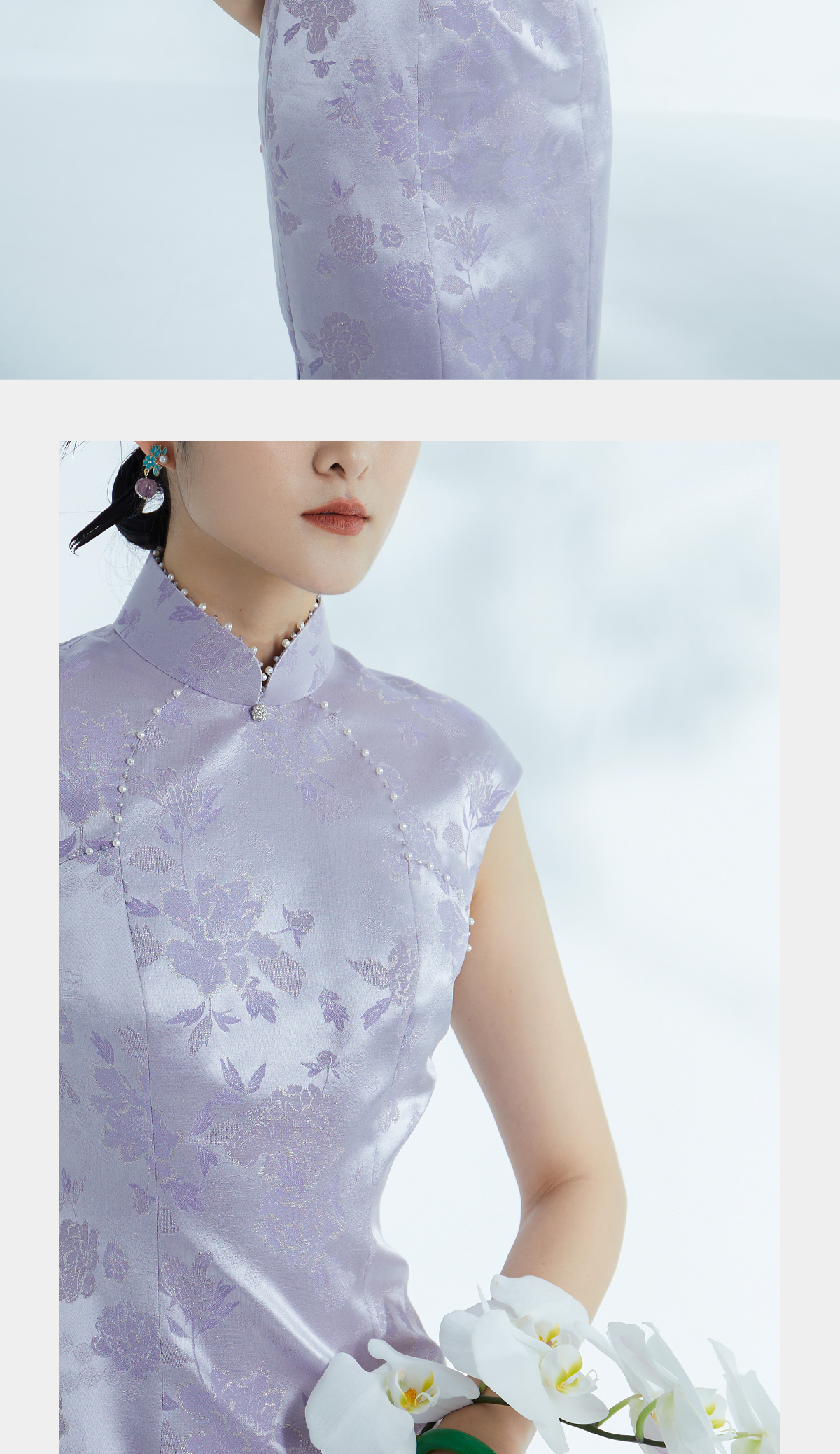 荷言HEYEN 黛轩 真丝羊毛牡丹提花织金紫色旗袍知性优雅风高定系列