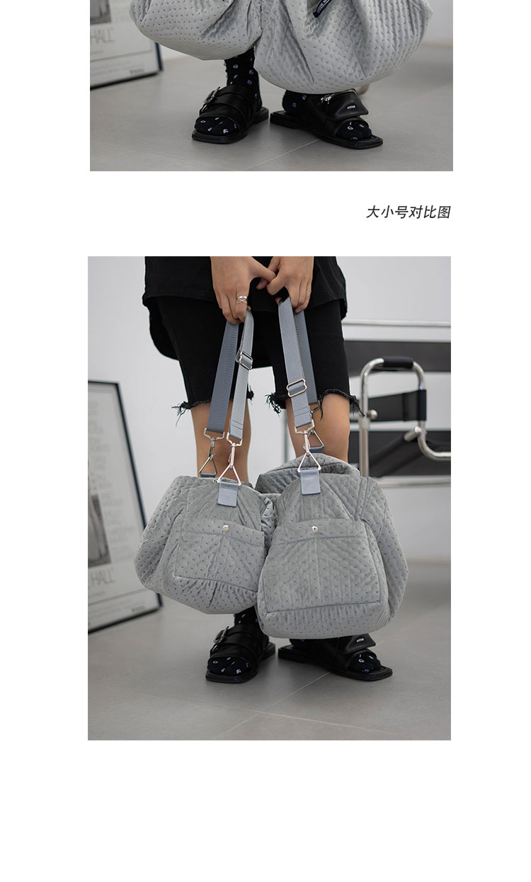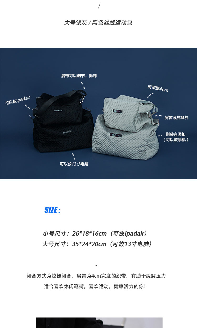 HIDDENNOTES l 原创斜挎单肩包 银灰色丝绒大容量运动旅行背包