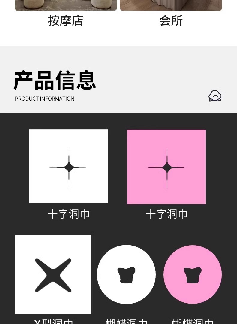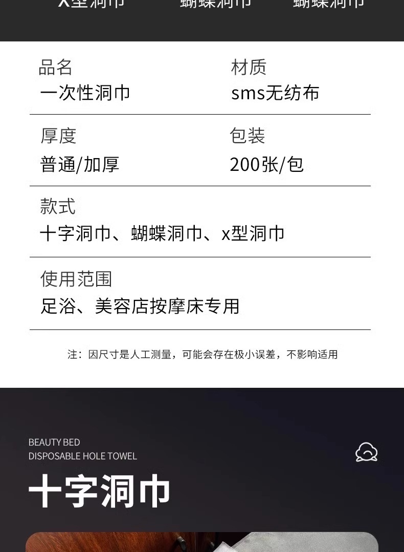 一次性洞巾十字蝴蝶美容床头趴枕垫布按摩床趴巾spa 床枕巾推拿垫
