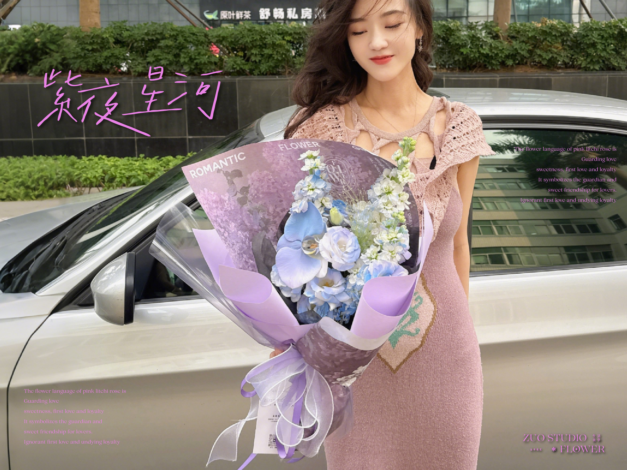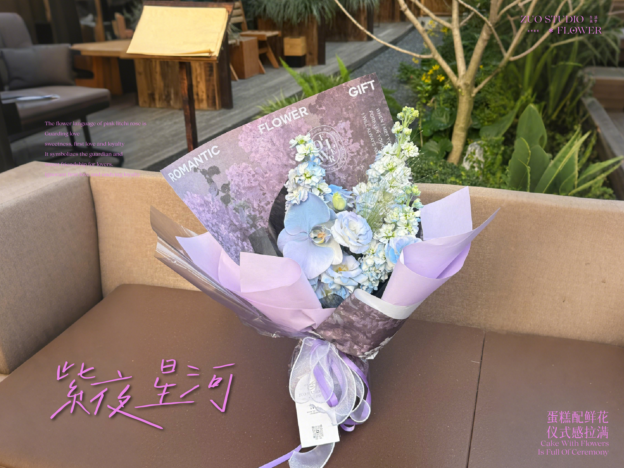 体验款【紫夜星河】蝴蝶兰1朵/桔梗7-9朵/紫罗兰3支/喷泉草1支/梦幻浪漫感/氛围感/鲜花蛋糕伴侣