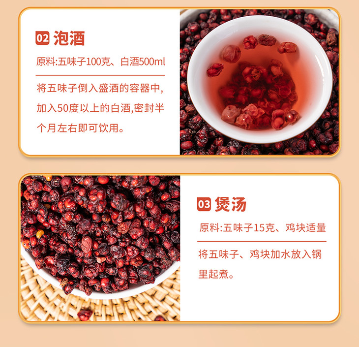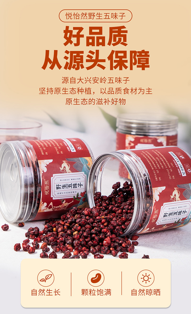 品名:大兴安岭野生五味子规格:120g*2罐包装:罐装+纸箱 快递:中通、顺丰随机发货 发货地/产地:大兴安岭 保质期:12个月 发货时效:48小时 运费模板:新疆、西藏、港澳台不发货;其他区域包邮周六周天、节假日除外,早上十点之前的订单是48小时发货 ,到货时间约为2-5天,请您耐心等待 |