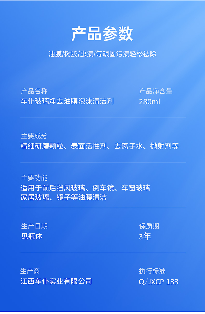 车仆玻璃油膜清洁剂去除剂前挡风玻璃去油污泡沫去油膜清洗剂
