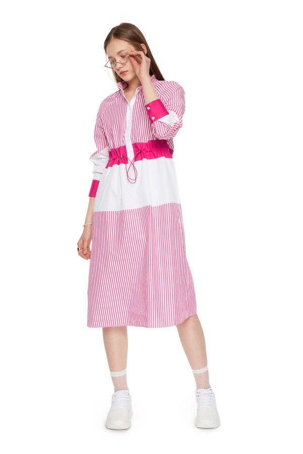 EMC亿美丞 拼色条纹收腰连衣裙 6007