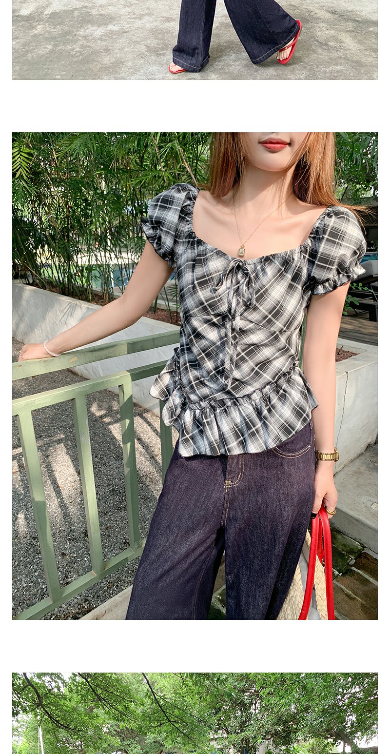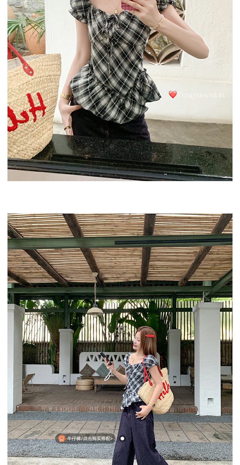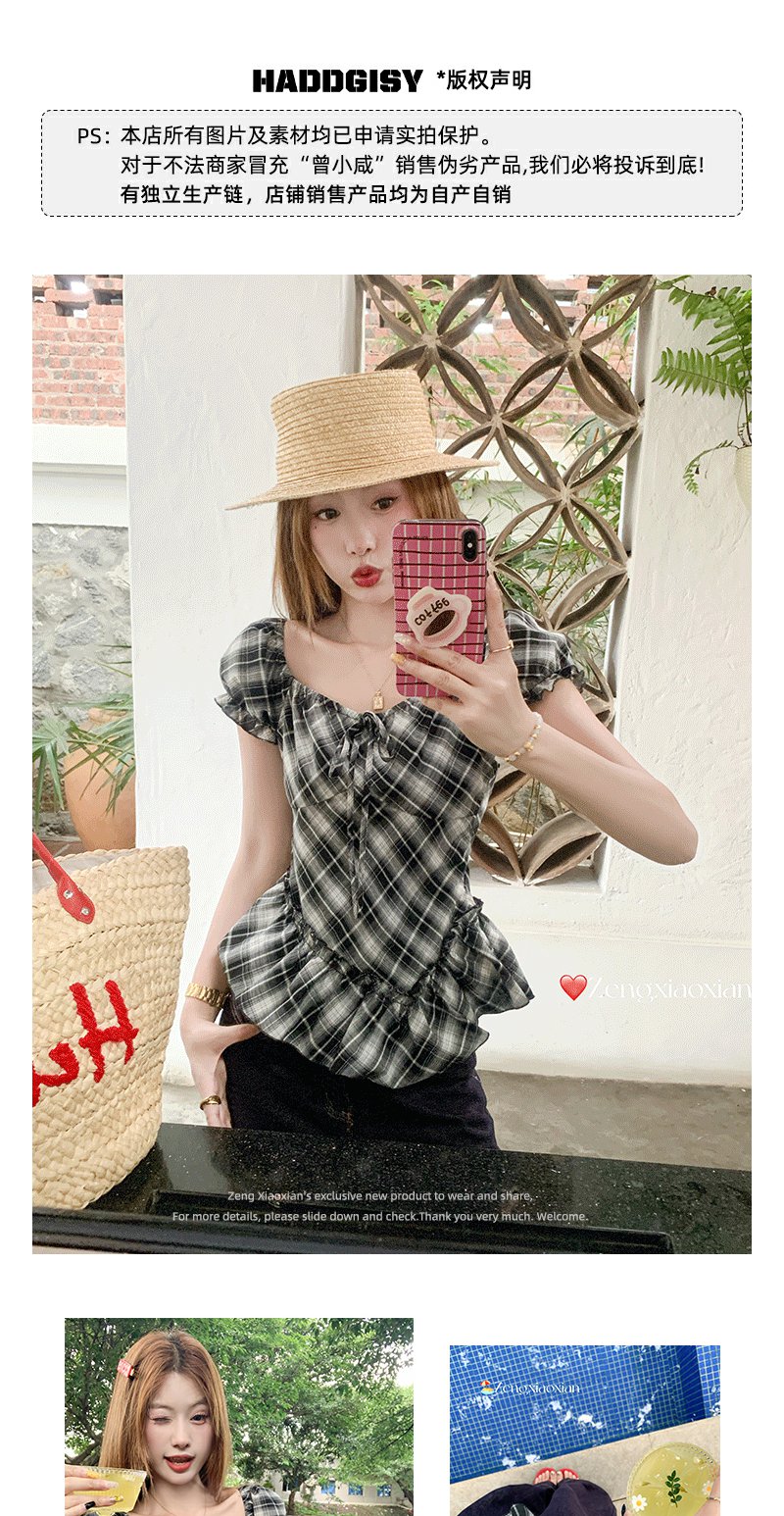 【149元任选2件】最后一波!复古格纹泡泡袖方领衬衫