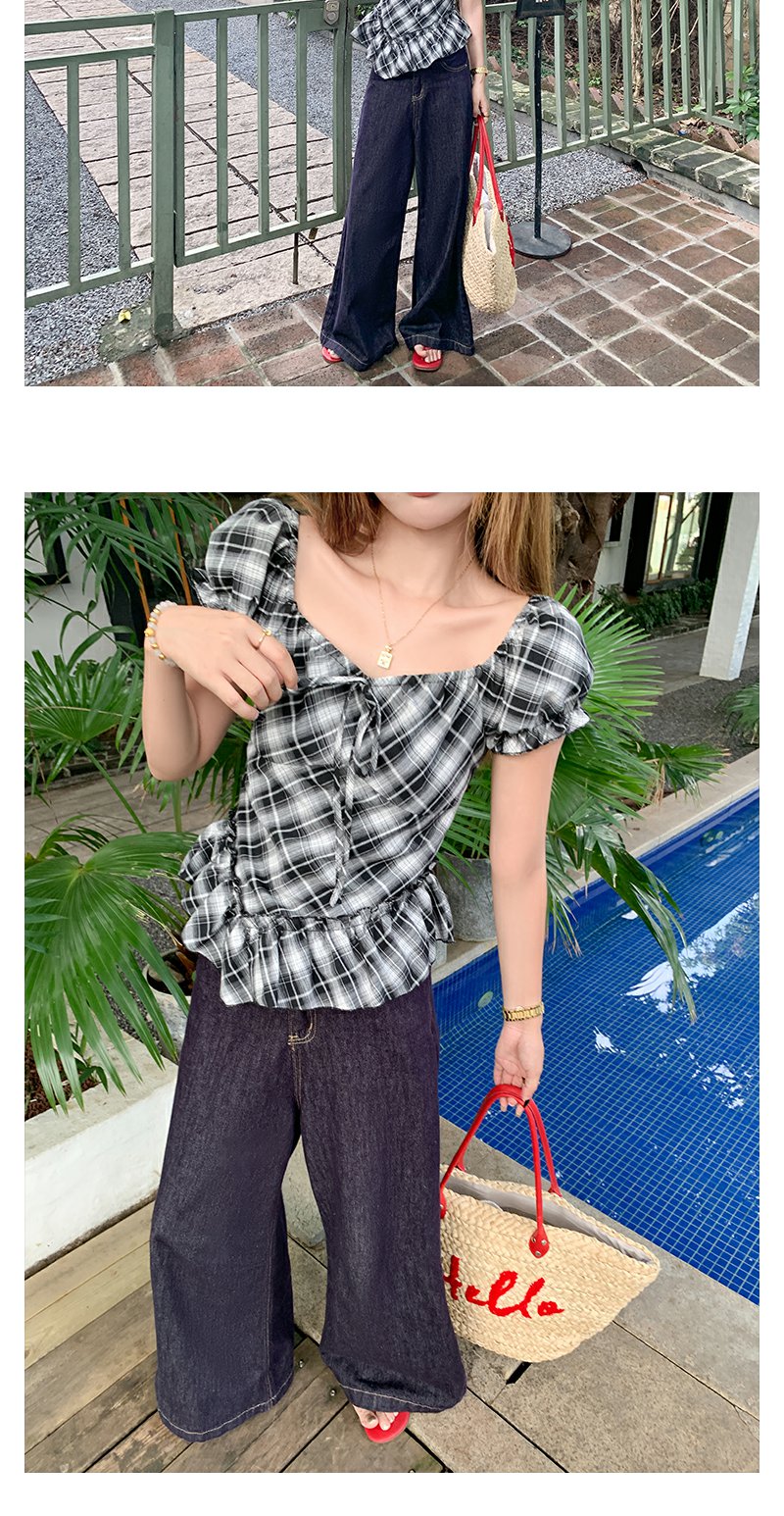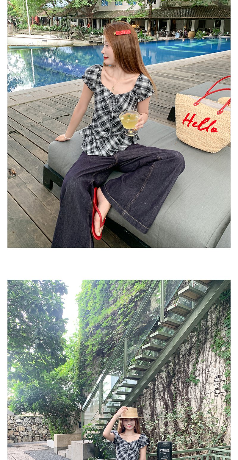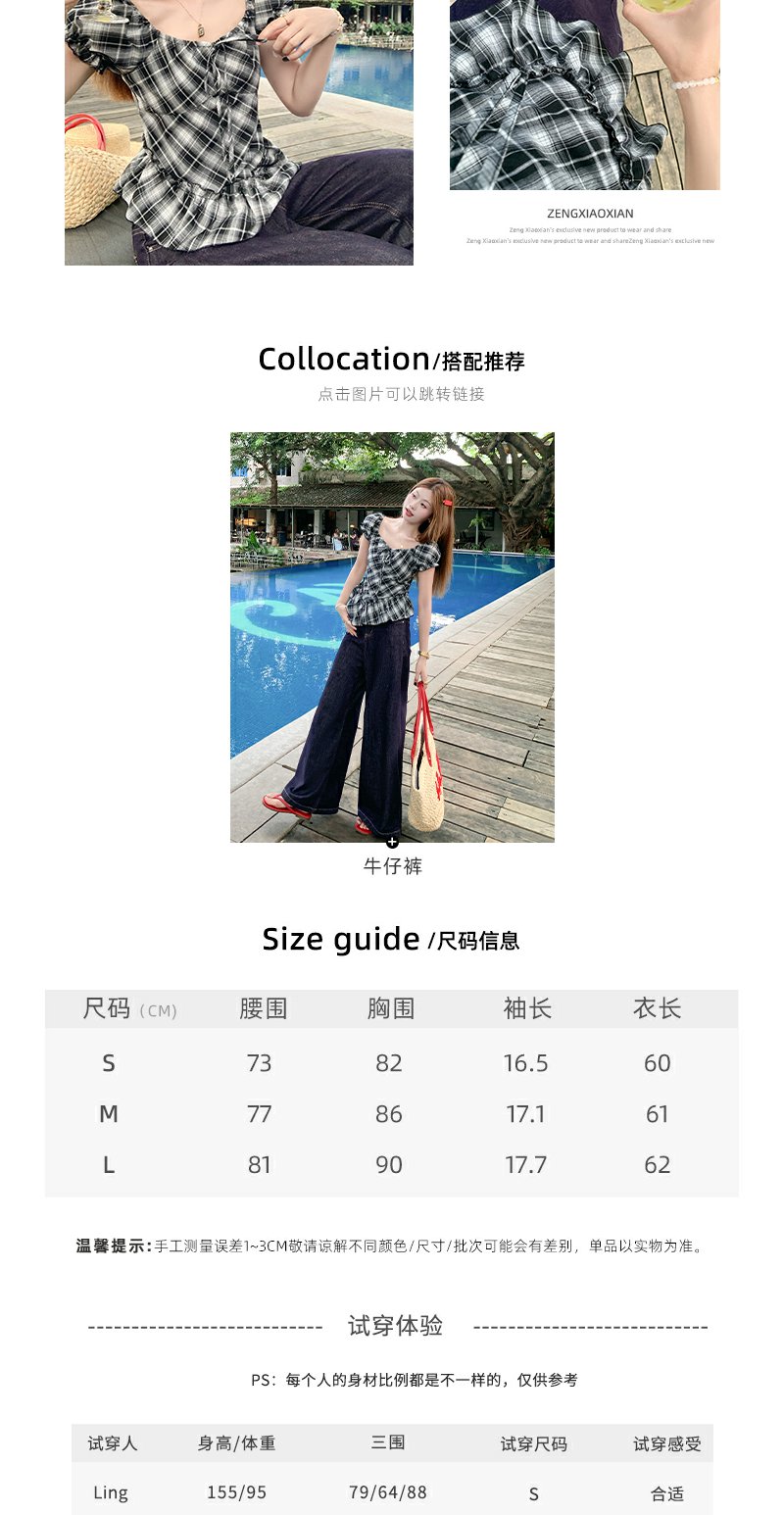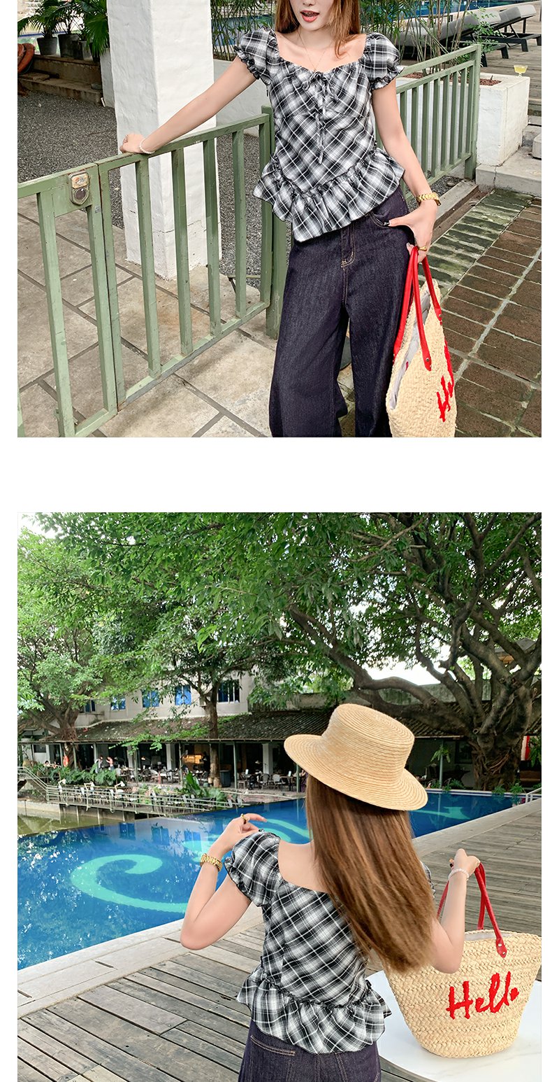 【149元任选2件】最后一波!复古格纹泡泡袖方领衬衫