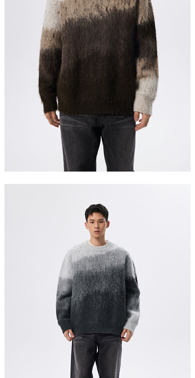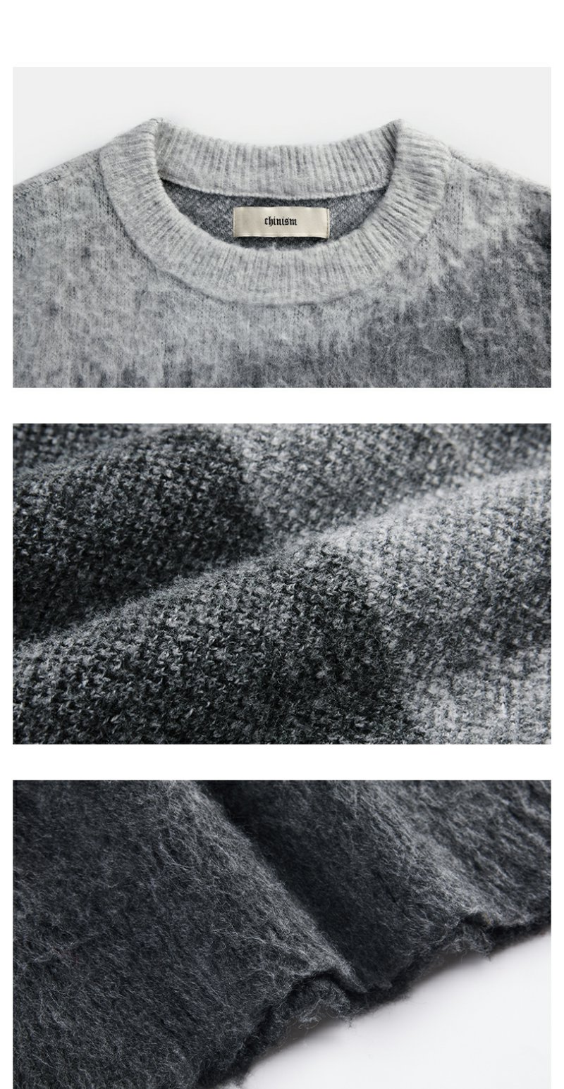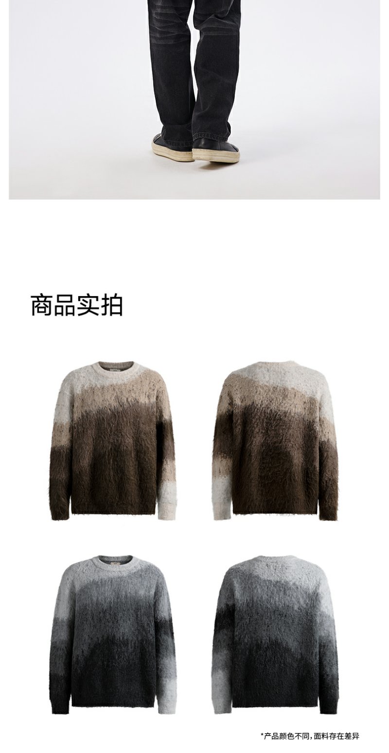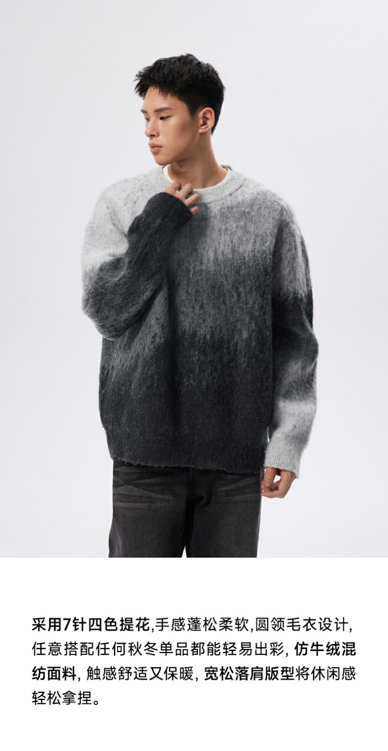 CHINISM赤尘 渐变圆领毛衣男冬季慵懒男士针织衫上衣男生高级线衣