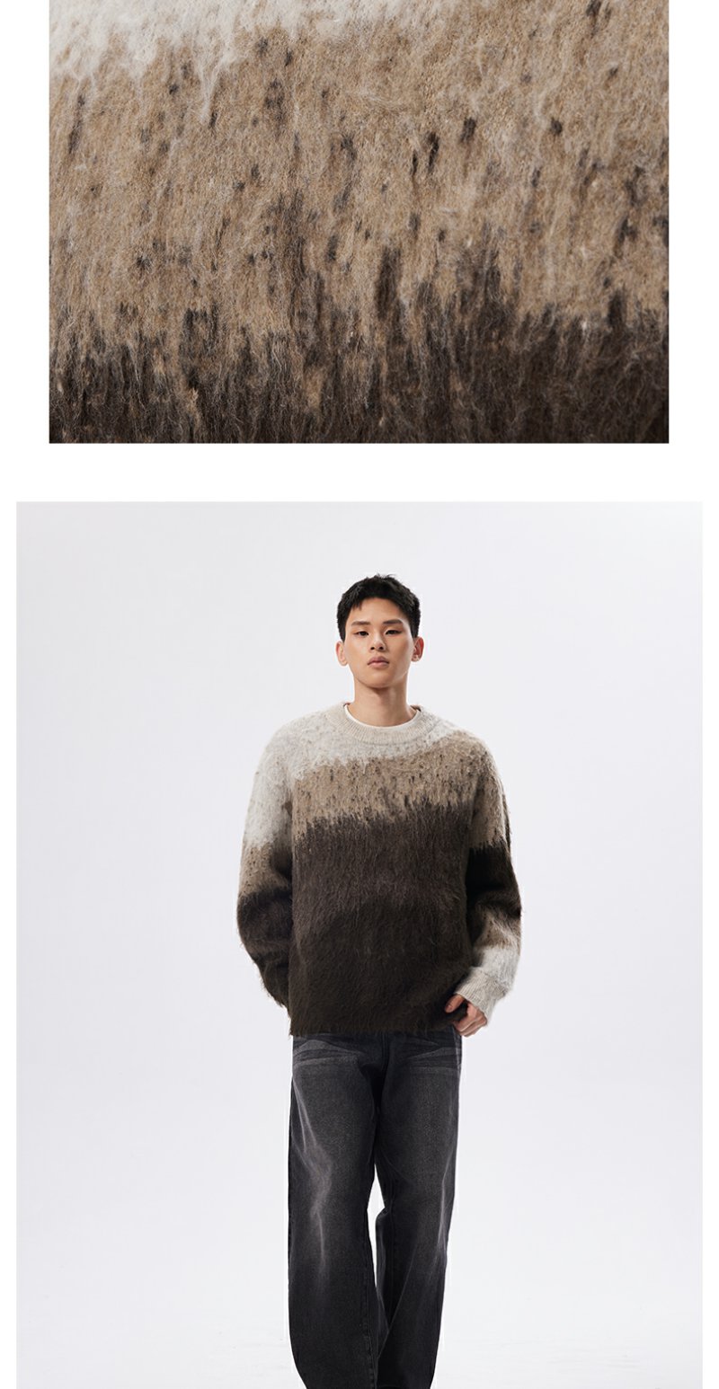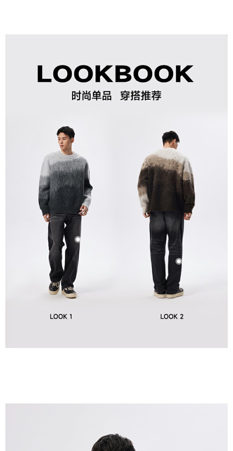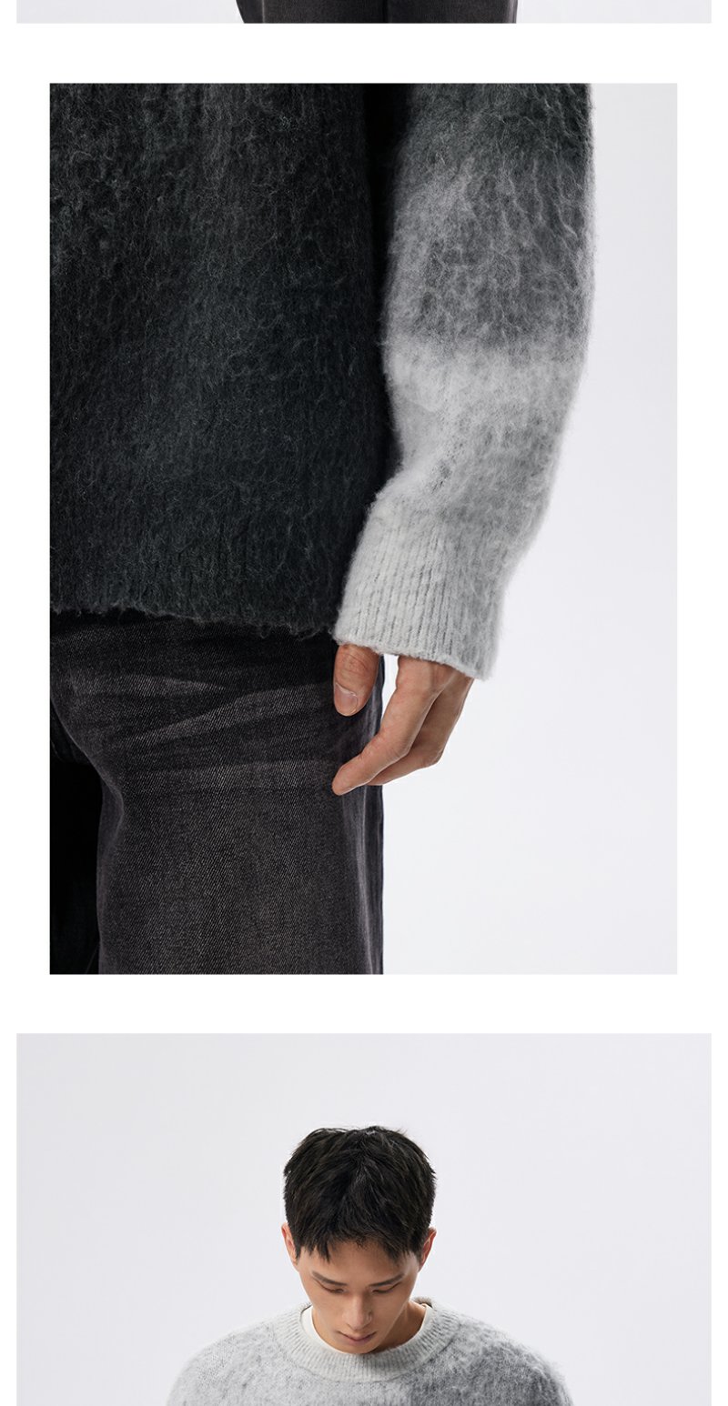 CHINISM赤尘 渐变圆领毛衣男冬季慵懒男士针织衫上衣男生高级线衣