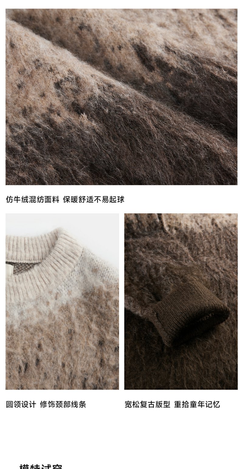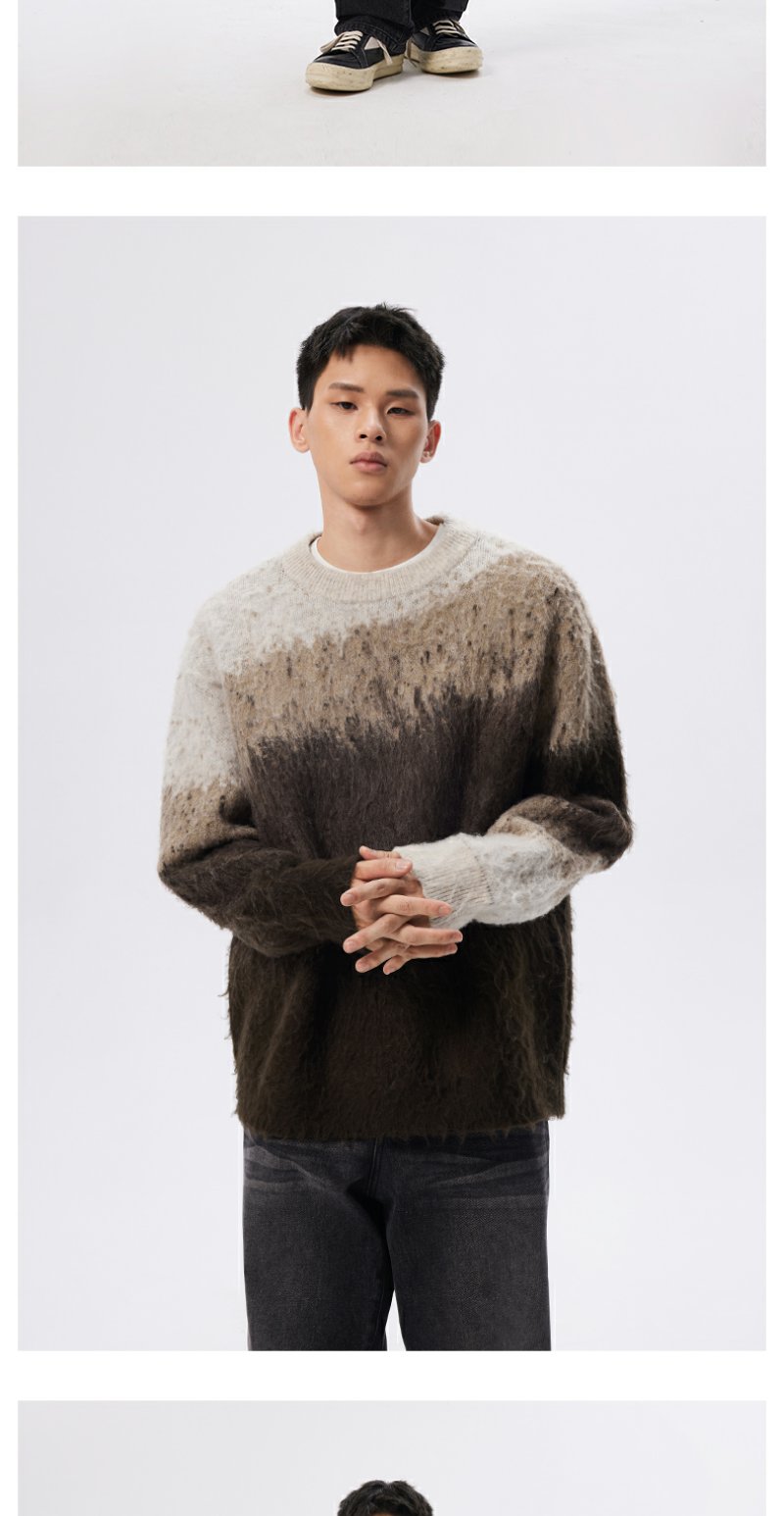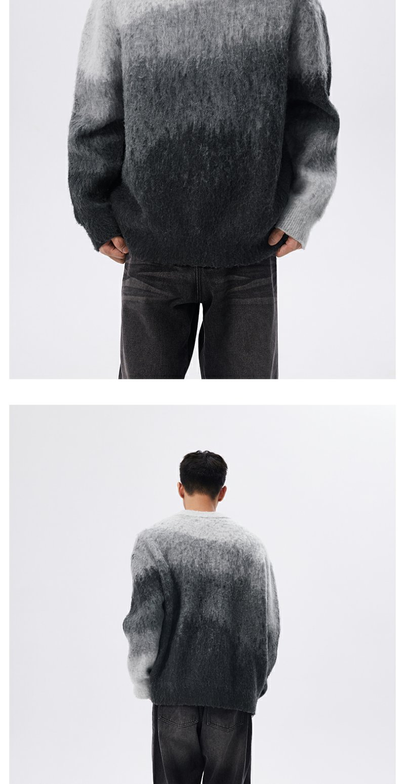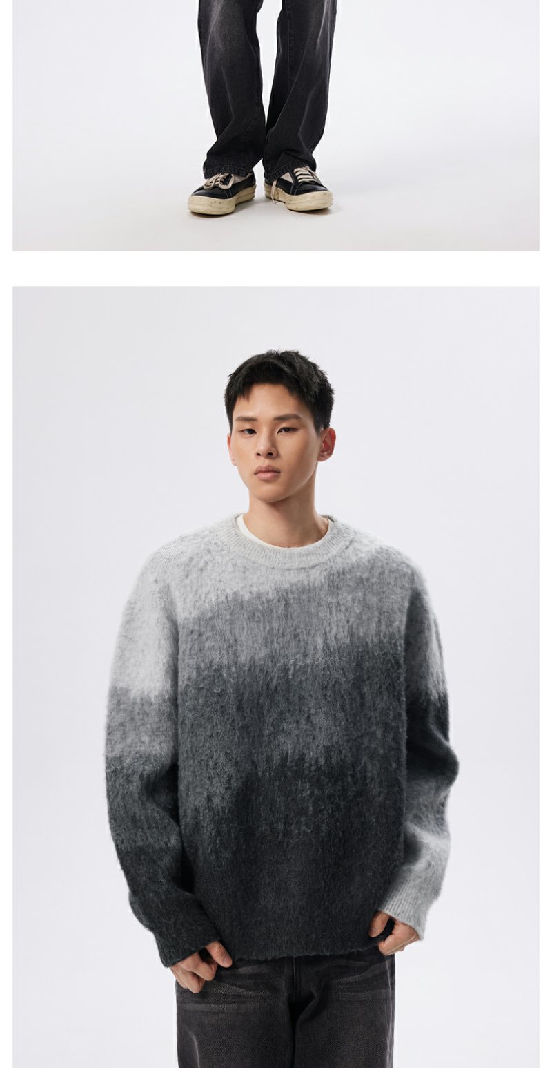 CHINISM赤尘 渐变圆领毛衣男冬季慵懒男士针织衫上衣男生高级线衣