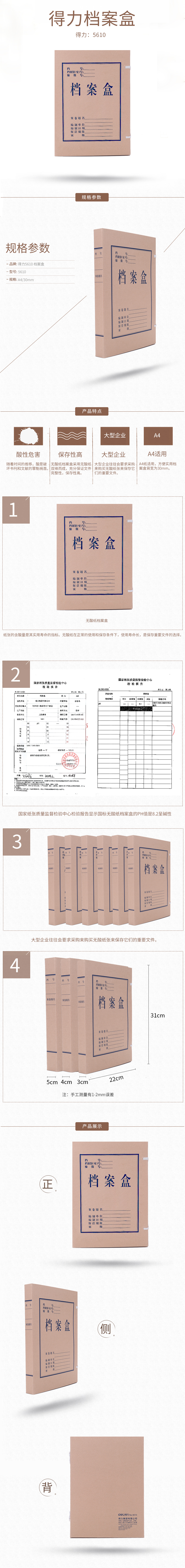 得力5610无酸牛皮纸档案盒(棕黄)(10个/包)