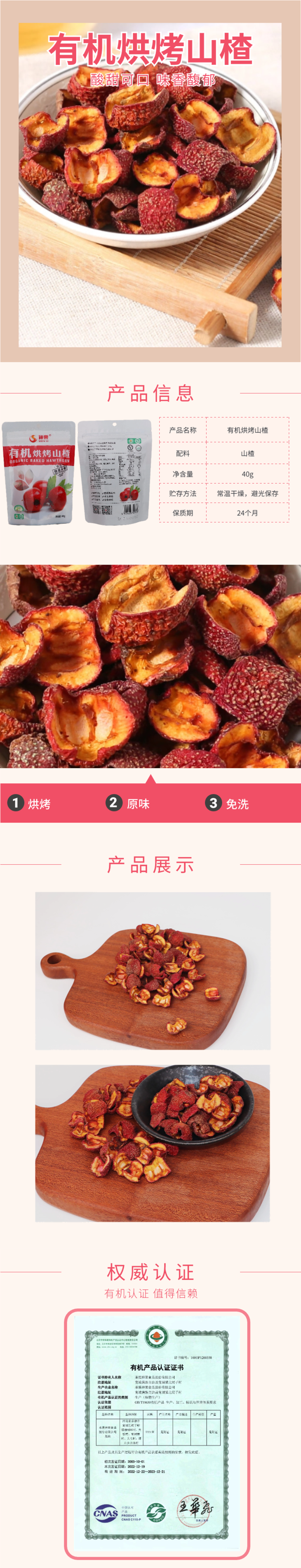 神栗有机烘烤山楂40g*2