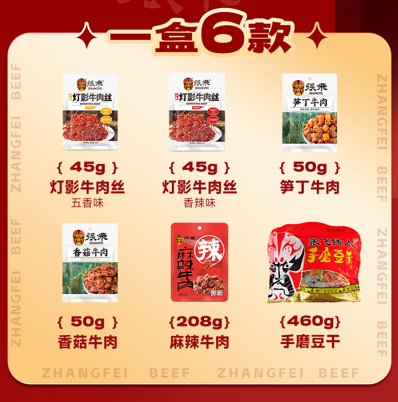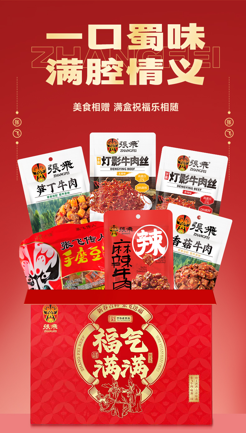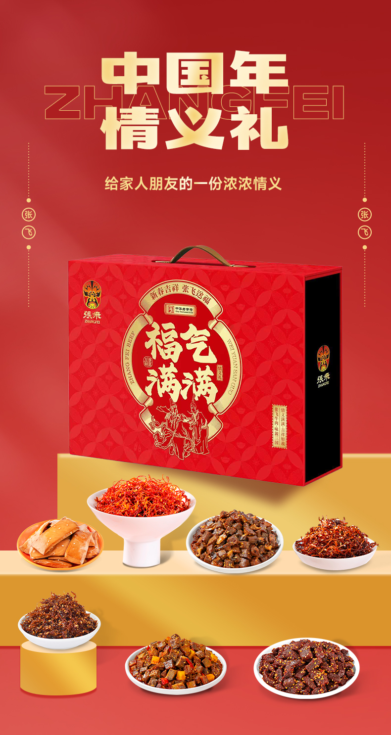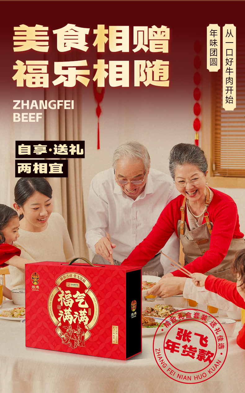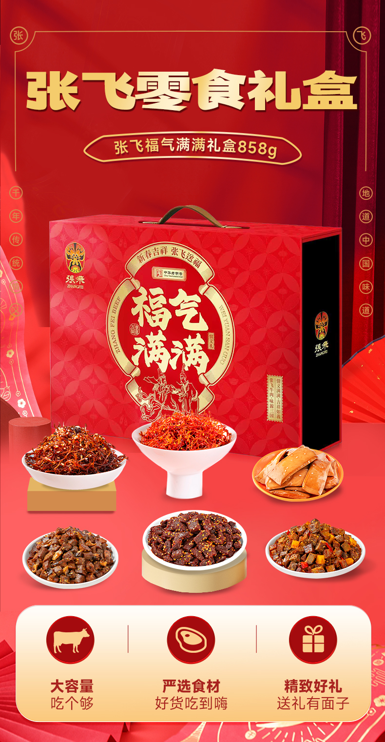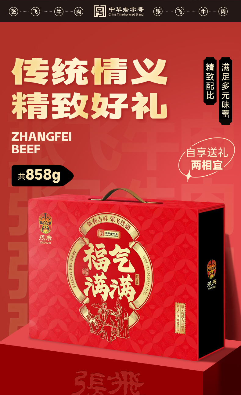 张飞牛肉福气满满礼盒-858g【年货】JCT