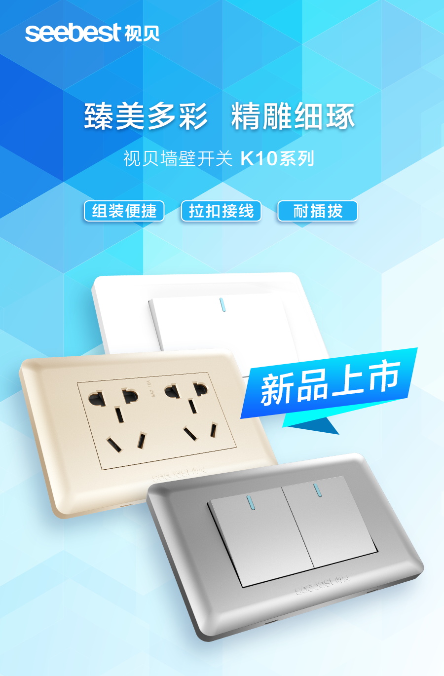 视贝K10灰系列墙开插座