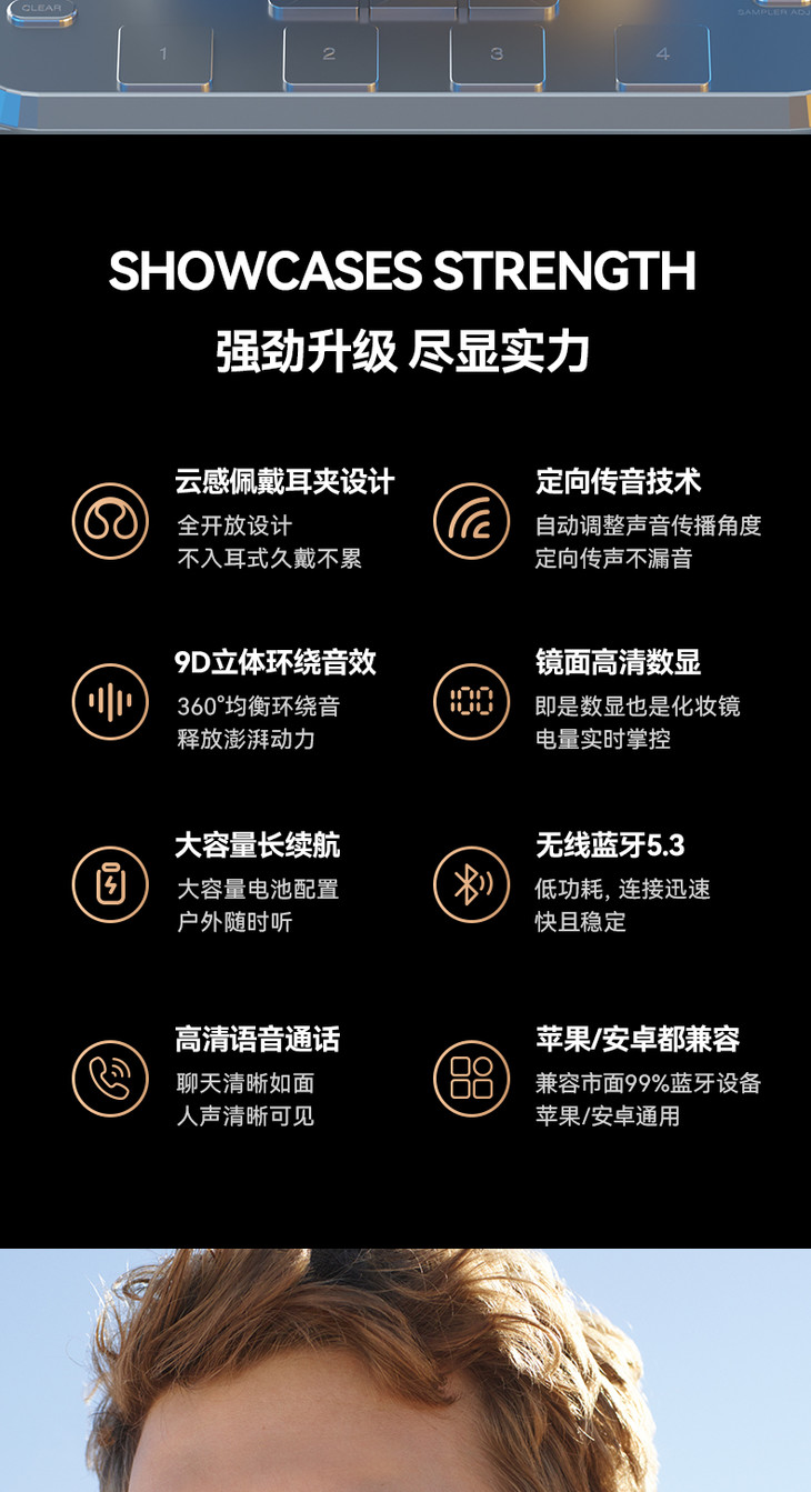 笙观骨传导蓝牙耳机,不入耳佩戴、9D立体环绕音【G】
