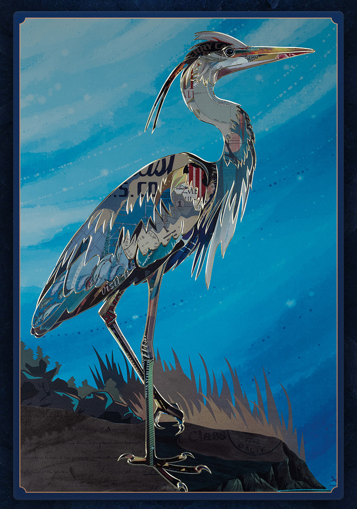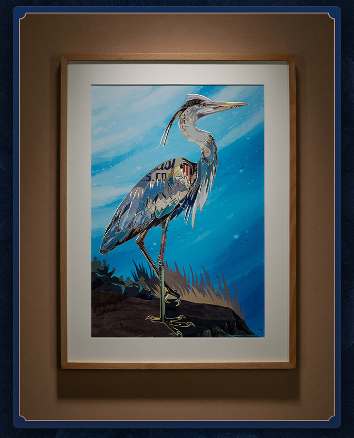 铜师傅 手工錾刻 铜雕画《蓝鹭之一》客厅餐厅玄关背景墙装饰画