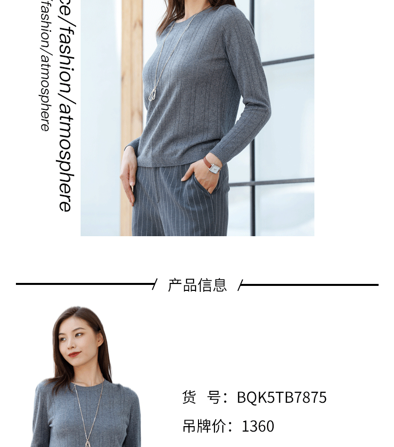宗洋zongyang女装2021秋冬款羊毛衫长袖套头纯色针织衫毛衫BQK5TB7875-16