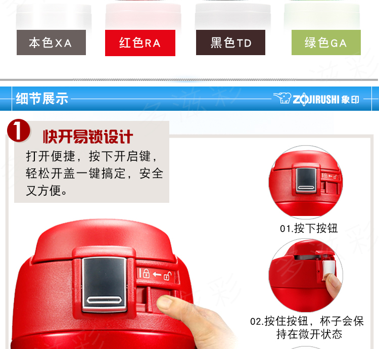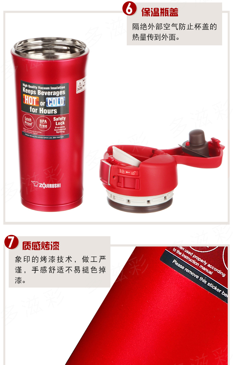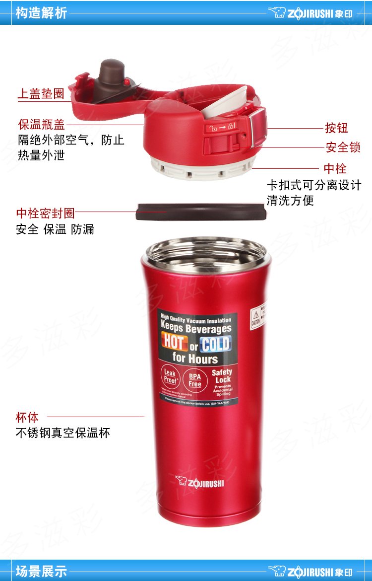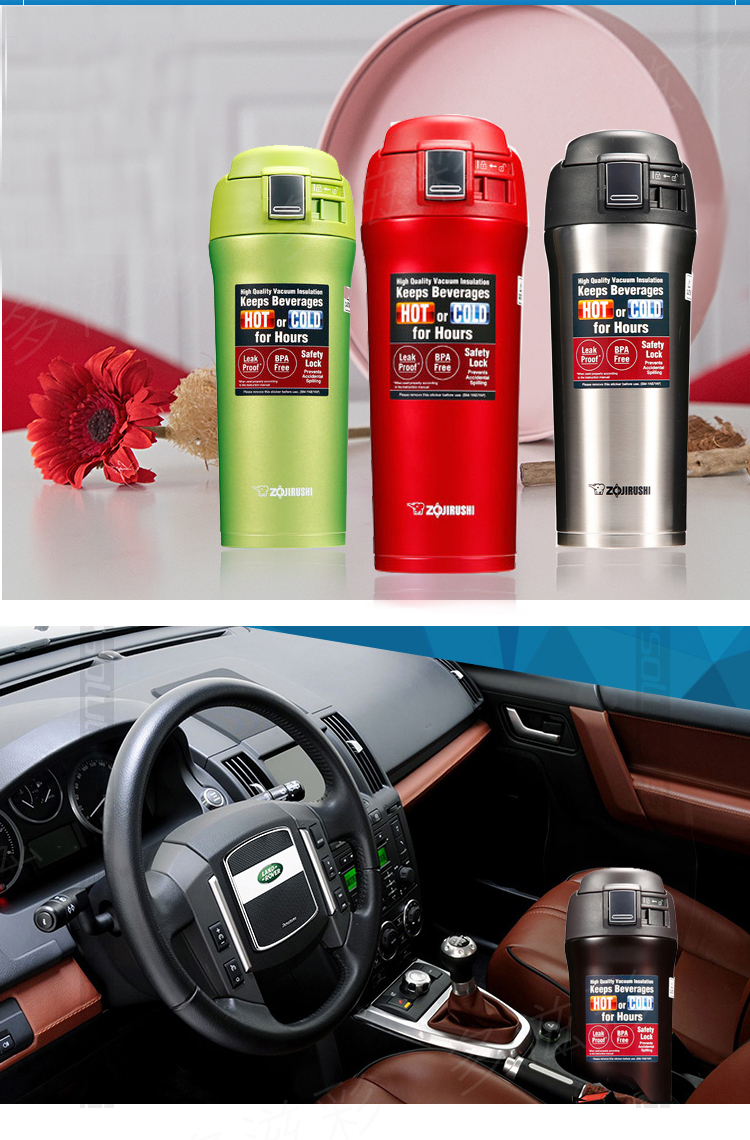 象印保温杯304不锈钢真空保温保冷杯车载弹盖杯480ml SM-YAF48 RA红色