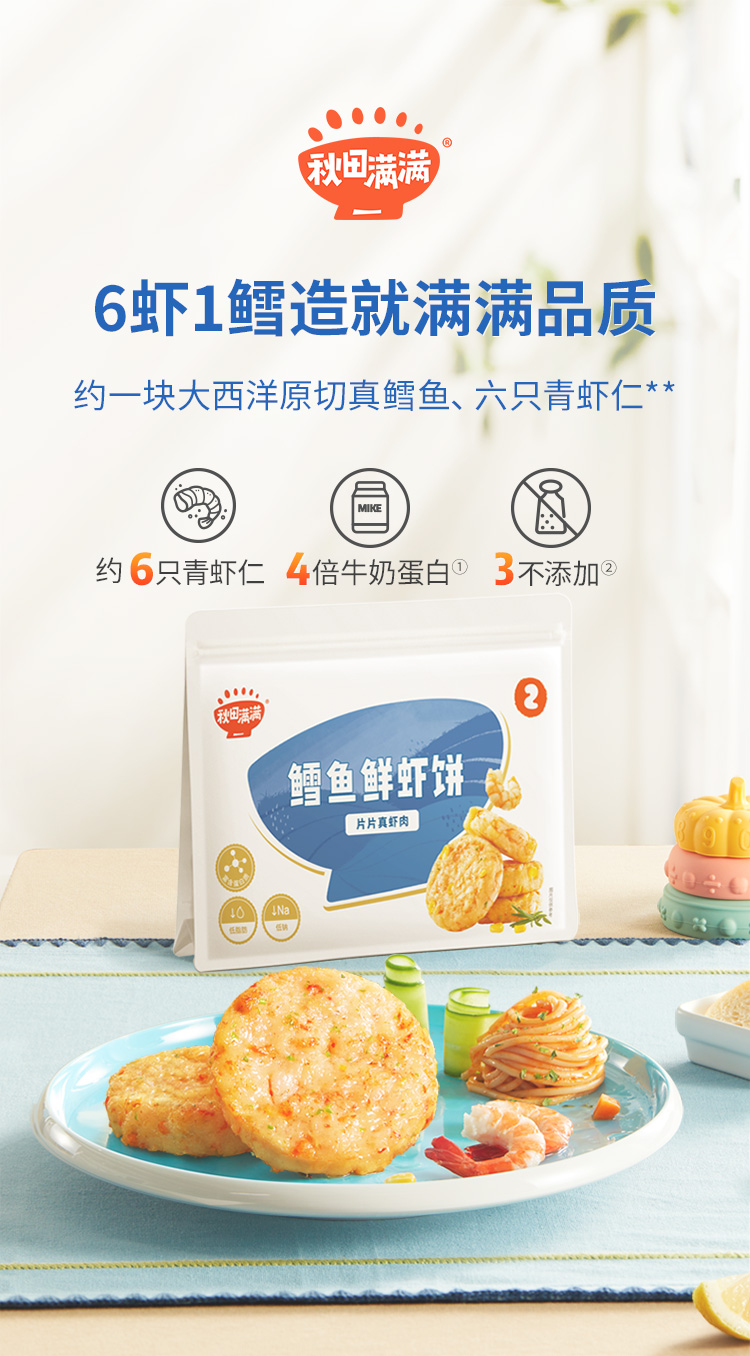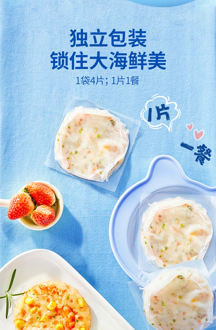 【冷链】高蛋白低钠鳕鱼鲜虾饼(青虾鳕鱼块),送婴幼儿辅食食谱,不叠加店铺满赠和会员折扣