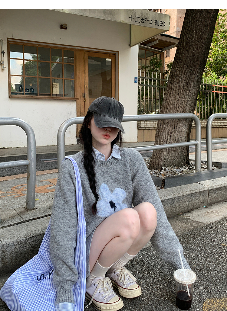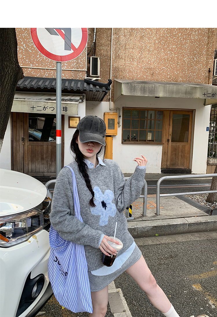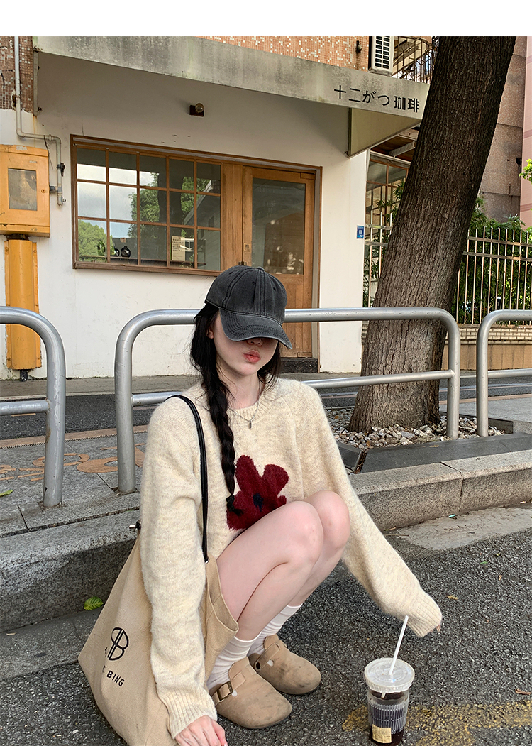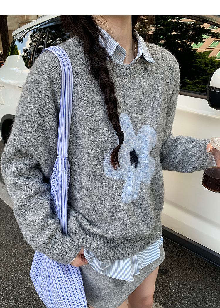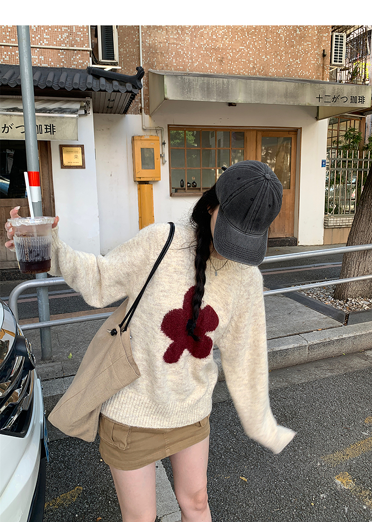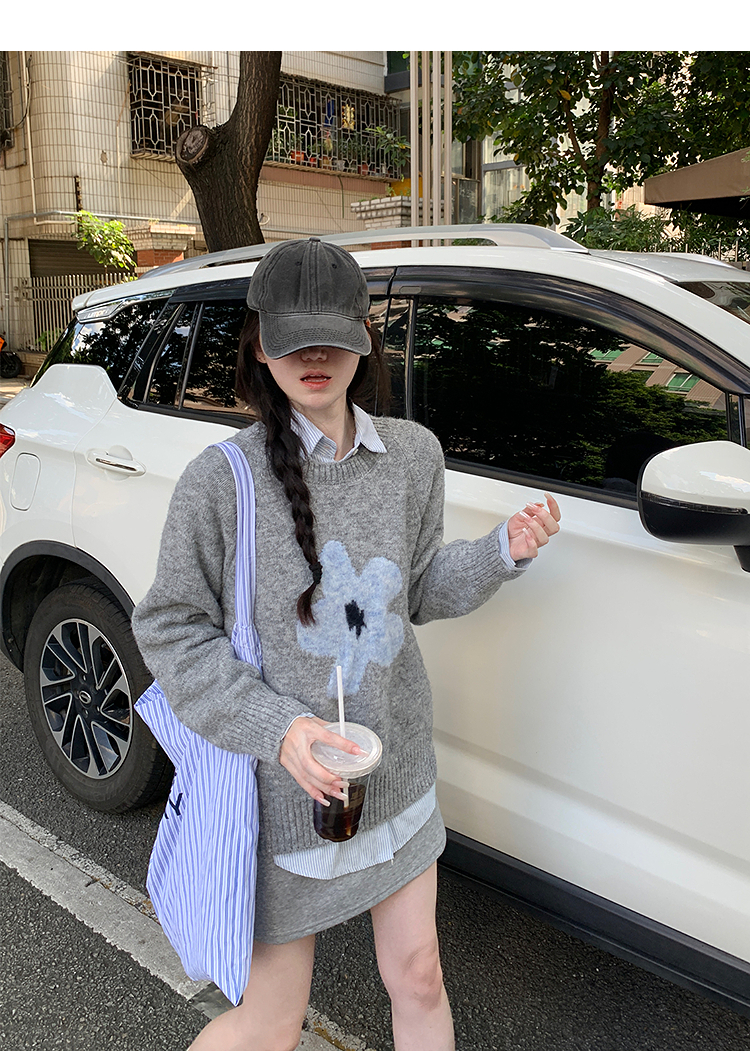 西遇套头毛衣女秋季新款慵懒松弛感花朵宽松圆领长袖针织衫SS051589