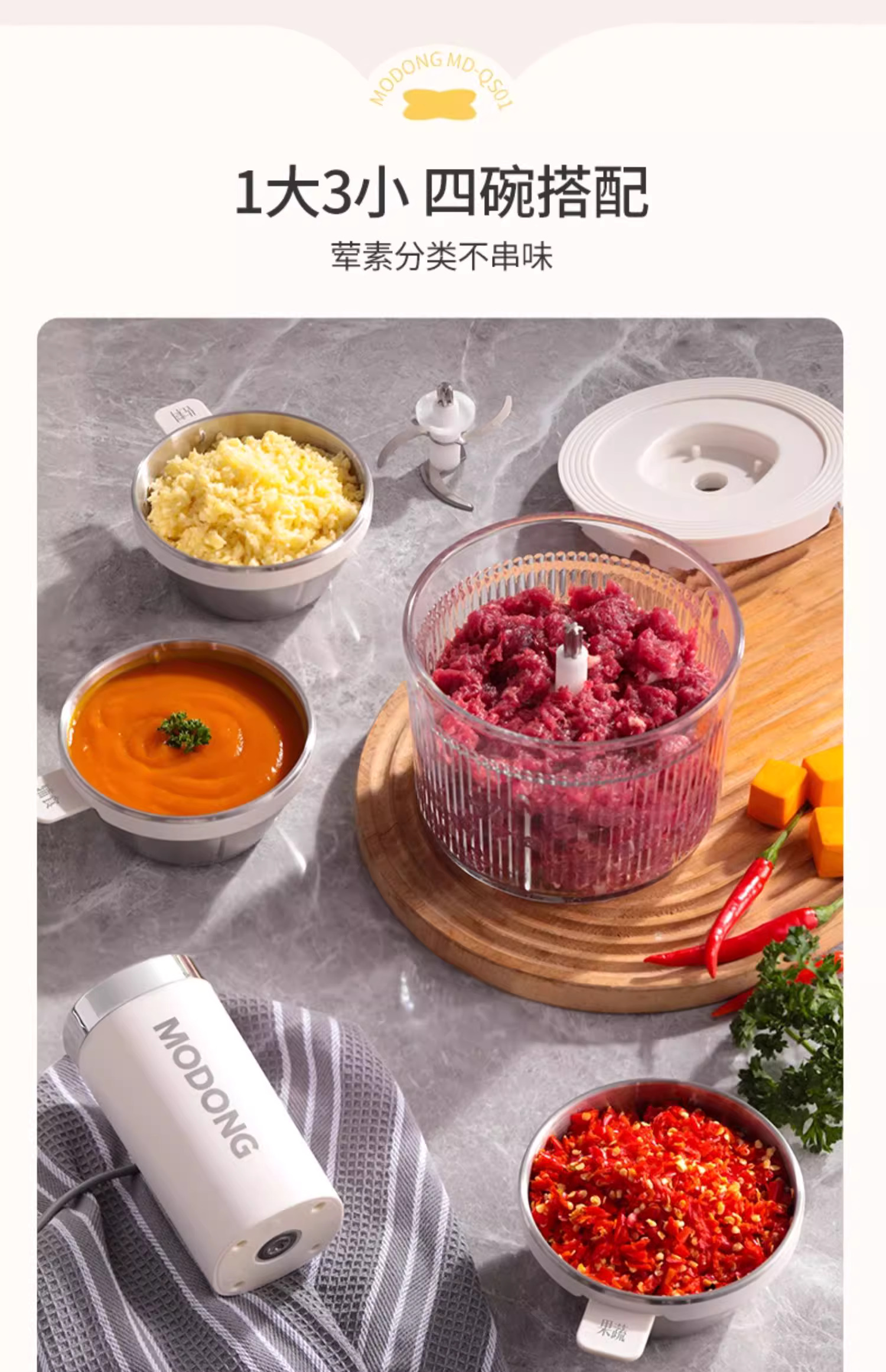 摩动绞肉机家用备餐佐料机多功能料理机电动绞馅机辅食机碎肉馅机