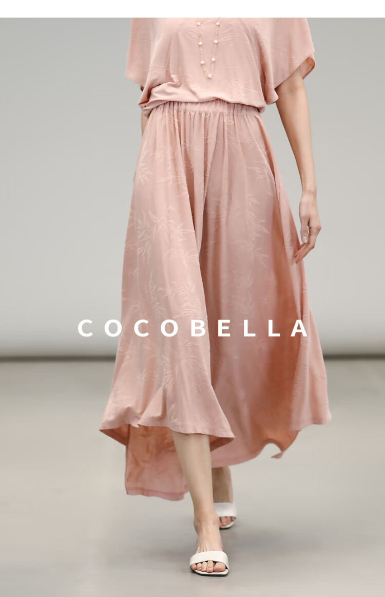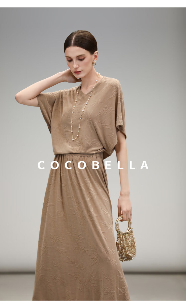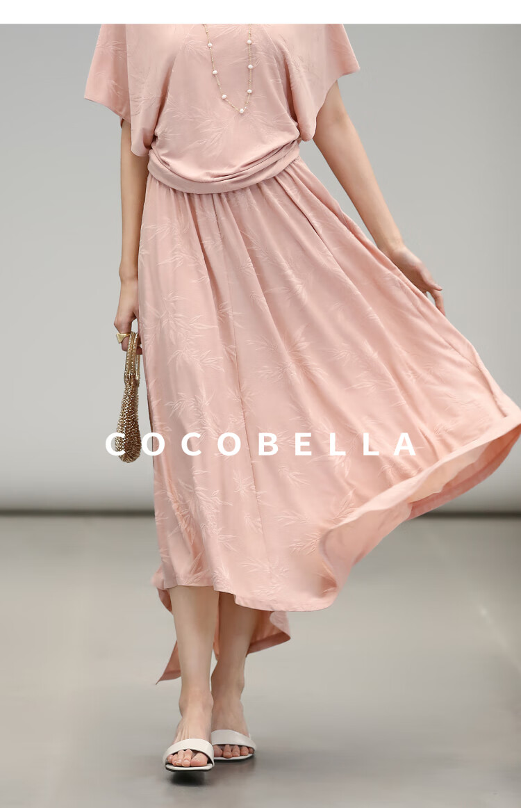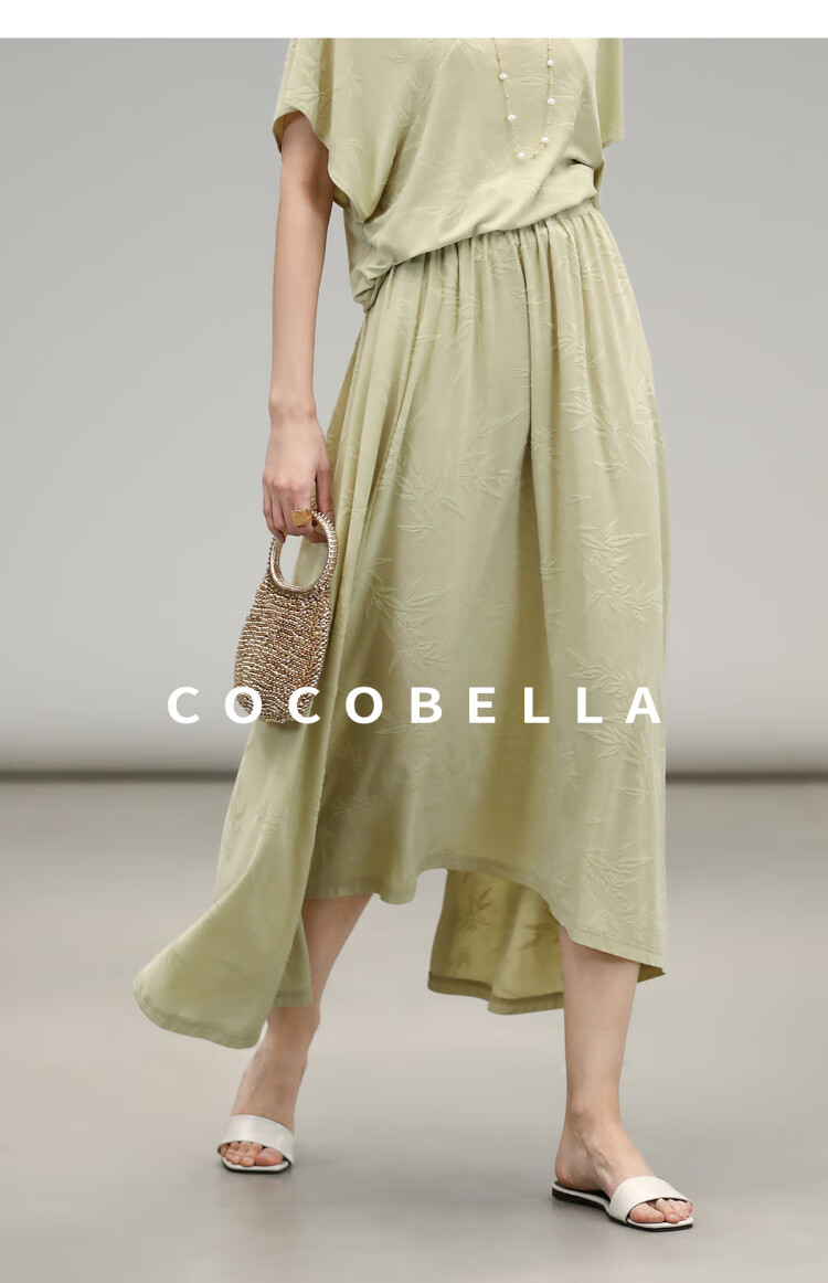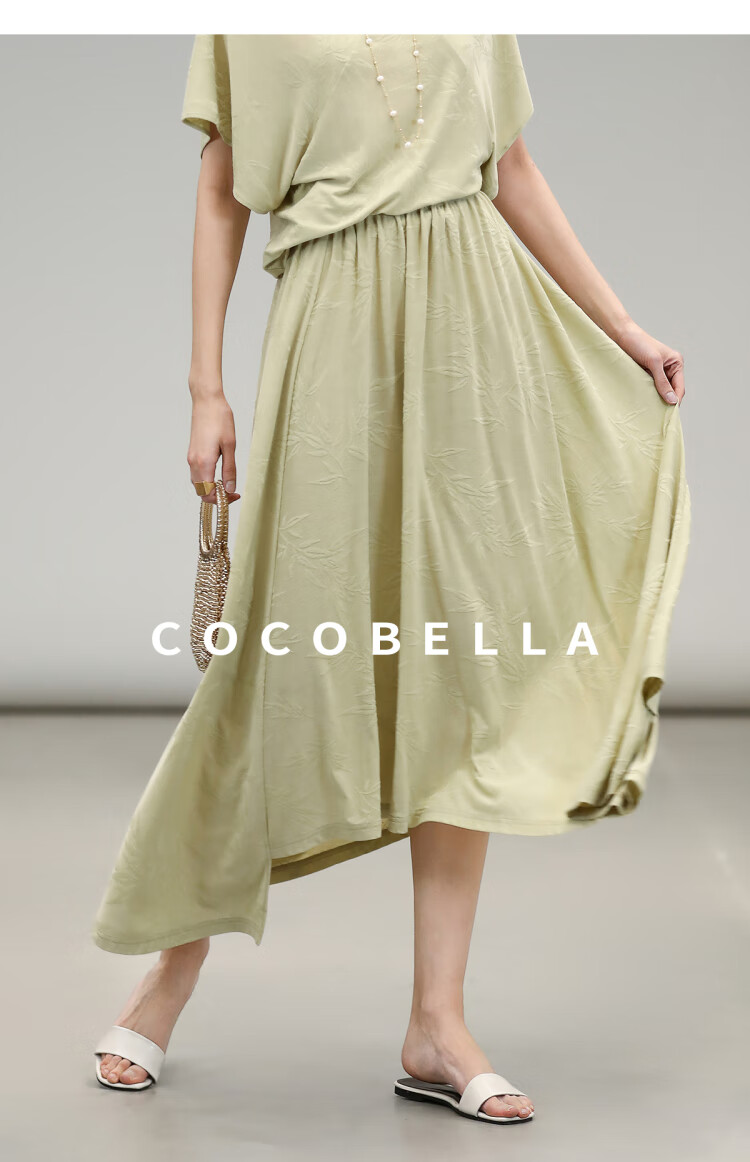 COCOBELLA竹叶提花新中式针织裙半身裙国风松弛感大摆长裙HS0038