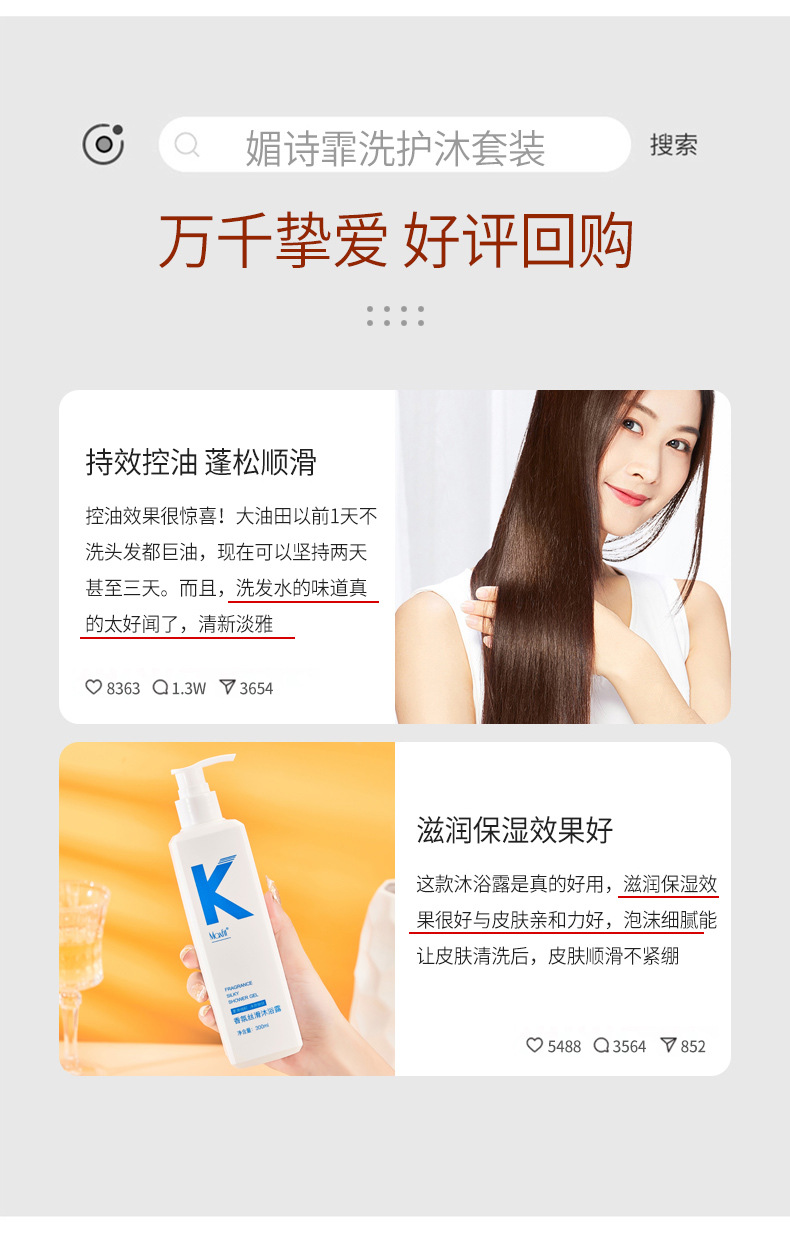 「9.9元包邮」媚诗霏洗发水沐浴露护发素 柔顺控油蓬松洗头膏洗发护发沐浴清洁