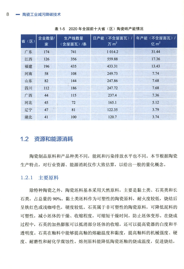 我国是陶瓷古国和陶瓷生产大国,现代化陶瓷生产技术已居国际先进地位,各主要陶瓷品种产量多年来均稳居世界首位,在节能减排方面有一批企业也居世界领先水平。党的二十大报告指出,要统筹产业结构调整、污染治理、生态保护、应对气候变化,协同推进降碳、减污、扩绿、增长,推进绿色低碳发展。减污降碳技术对推动陶瓷工业清洁生产,实现绿色高质量发展具有重要作用。