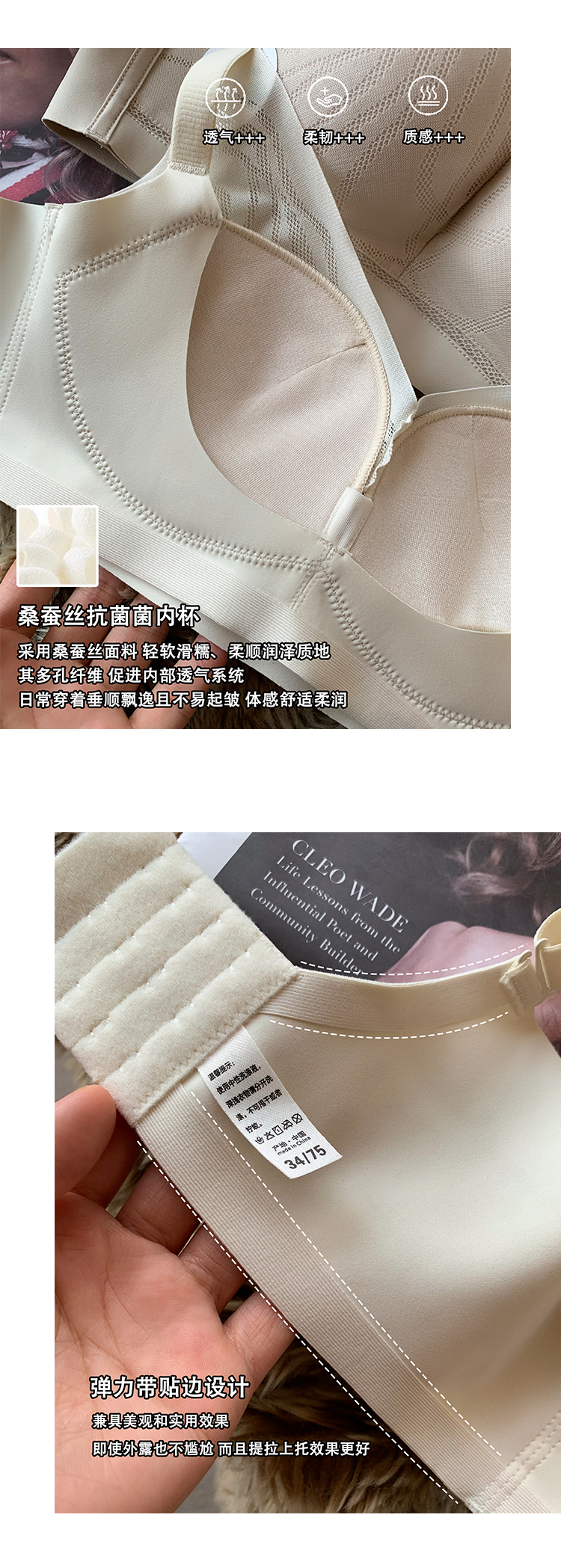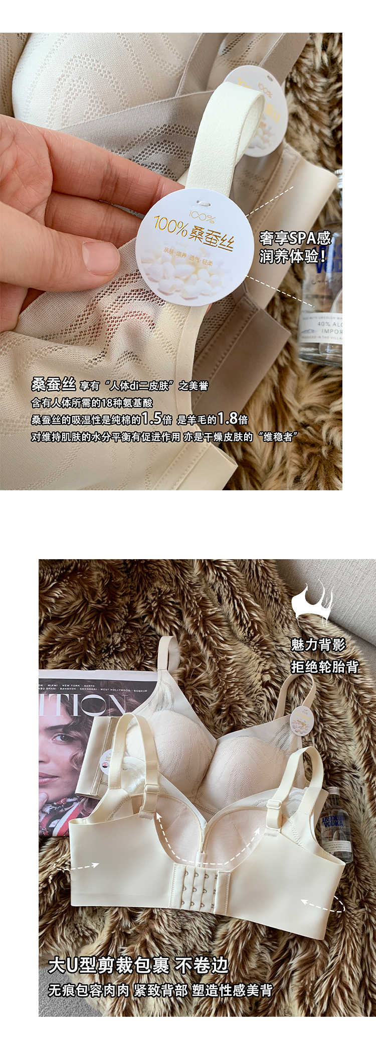 罩杯内料采用桑蚕丝材质