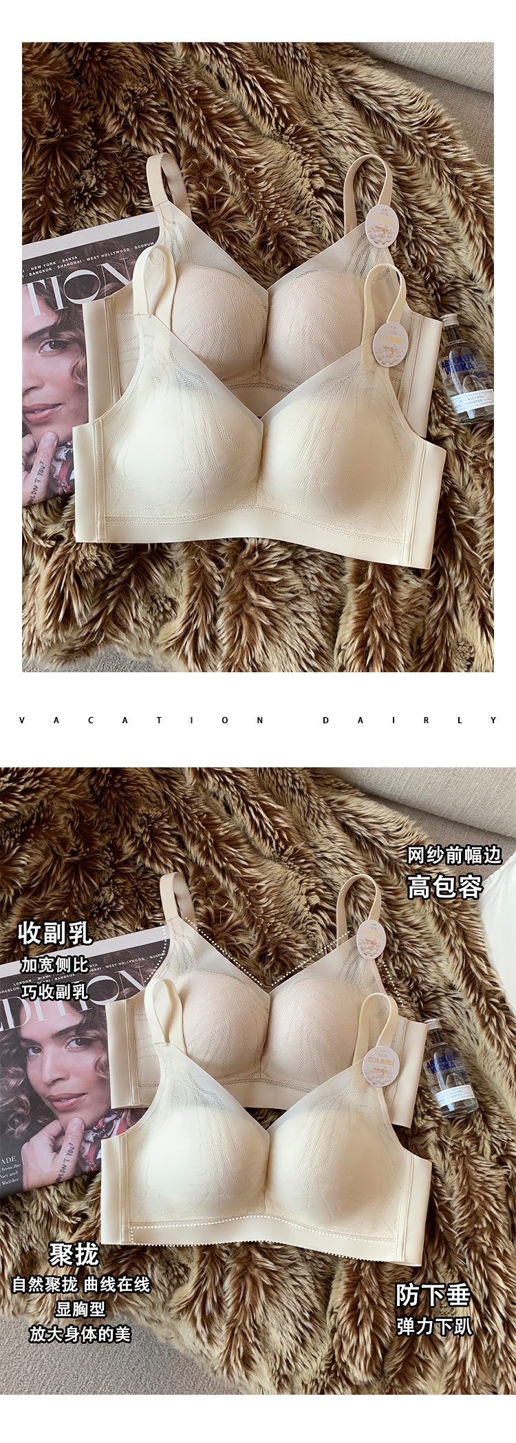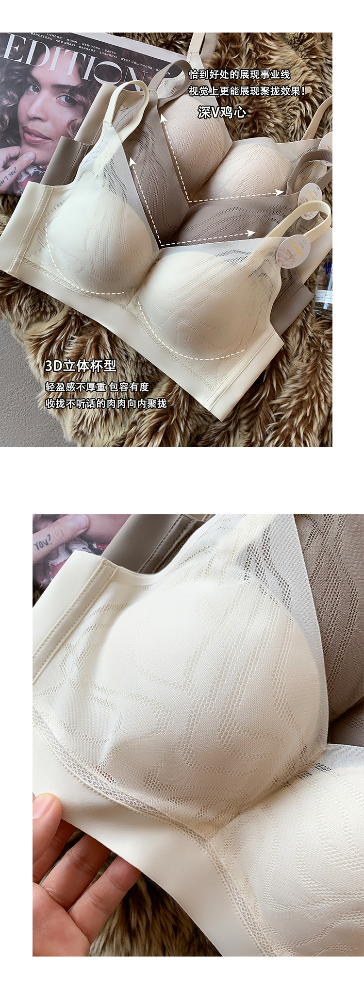 无痕W型底围 软支撑,胸型上托防止下垂