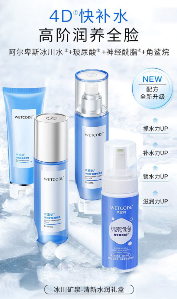 水密码清新水润四件套【洁面+水+乳液+去角质】套装