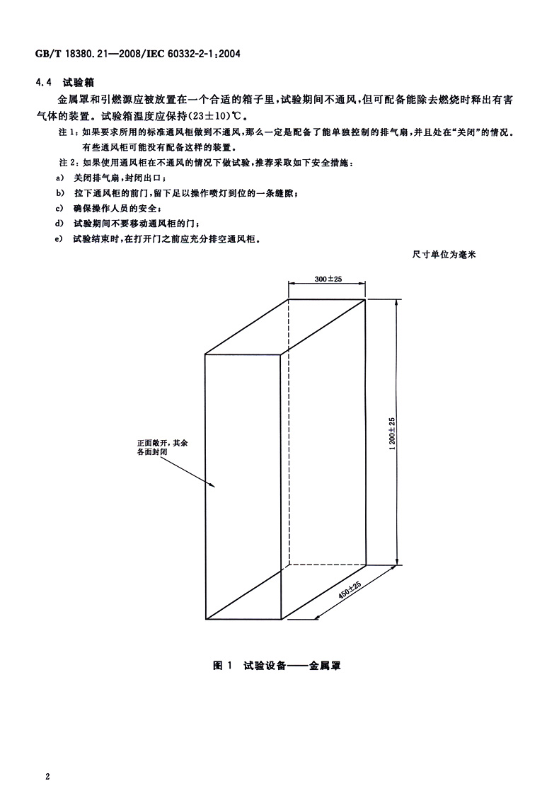 GB/T 18380.21-2008电缆和光缆在火焰条件下的燃烧试验 第21部分:单根绝缘细电线电缆火焰垂直蔓延试验 试验装置