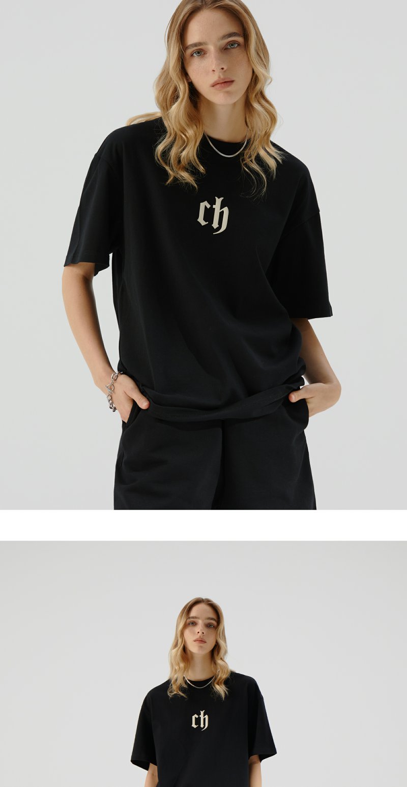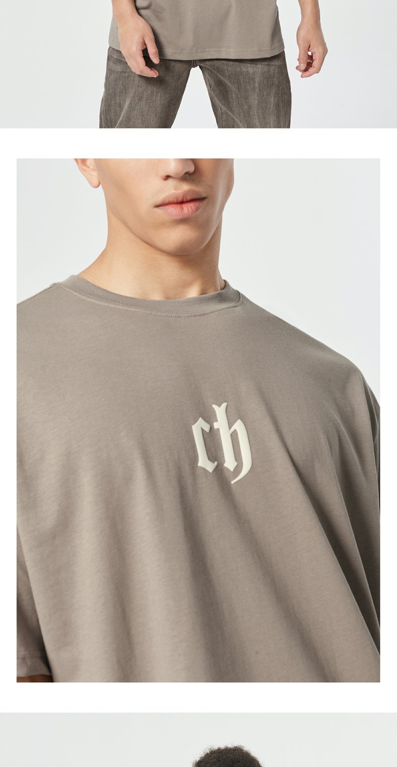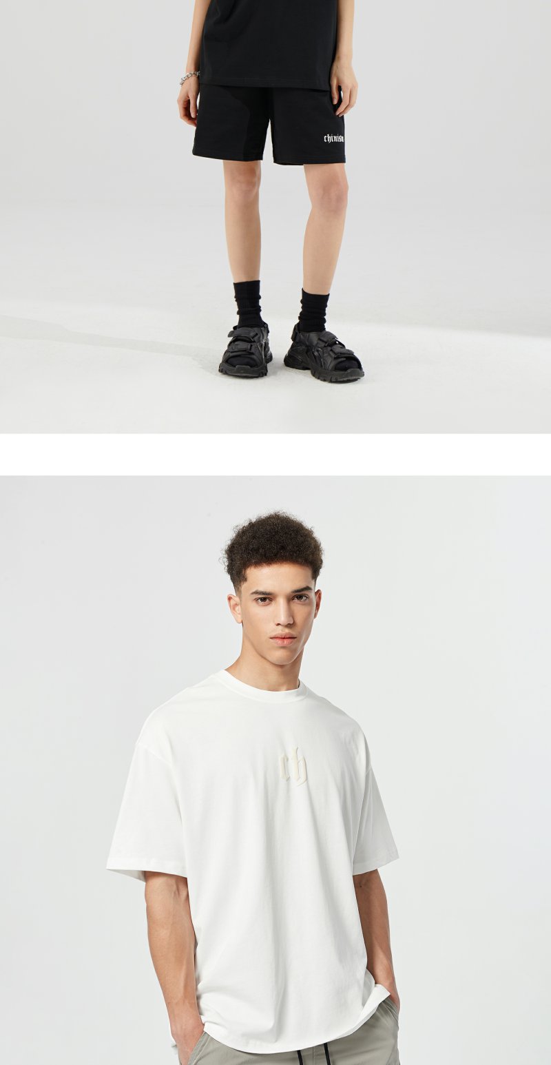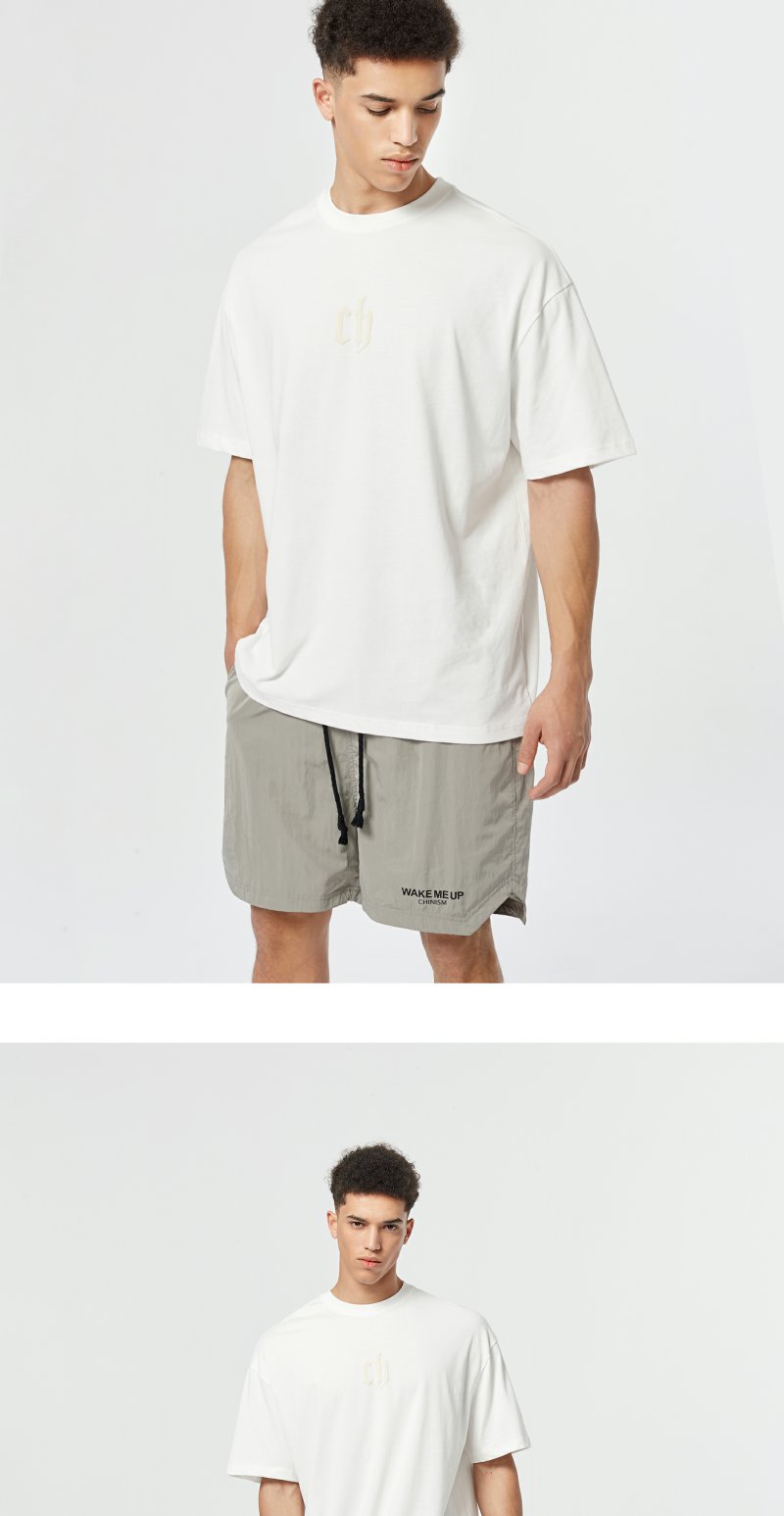 CHINISM赤尘 白色发泡字母印花短袖T恤男夏季美式简约情侣半袖
