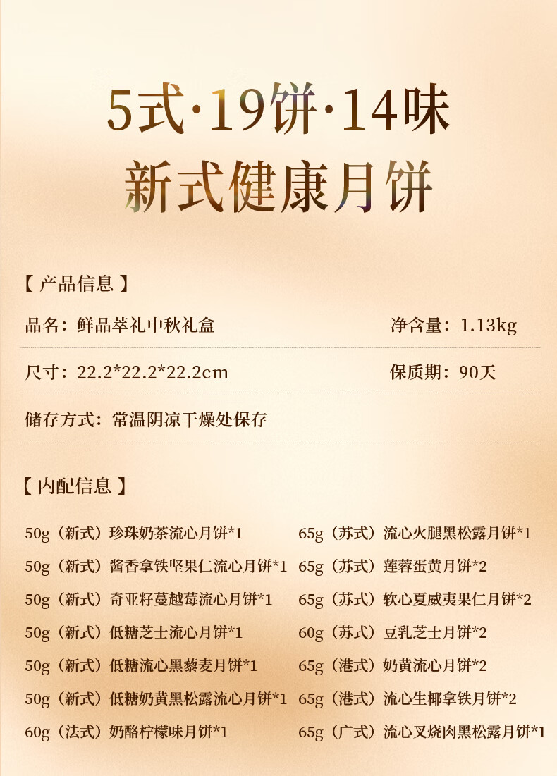 鲜品屋中秋节月饼礼盒高档新式健康流心月饼送礼蛋黄莲蓉礼品 鲜品萃礼1130g