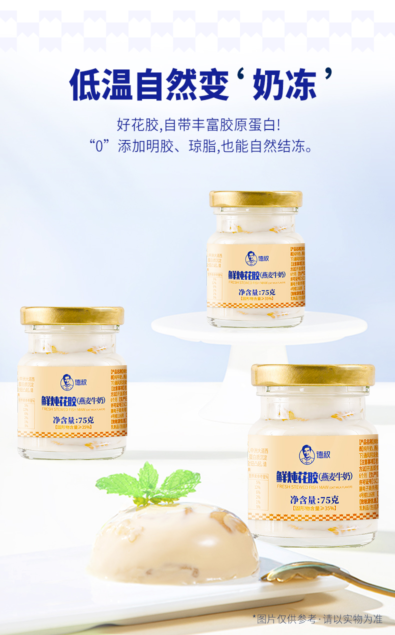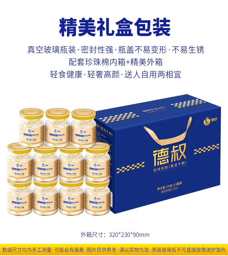 【新品上市】德叔花胶奶冻系列新升级即食纯奶味鲜炖花胶75g*11瓶*2箱 花胶礼盒胶原蛋白【常温储存】