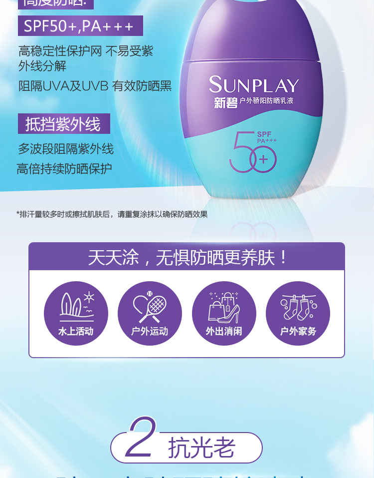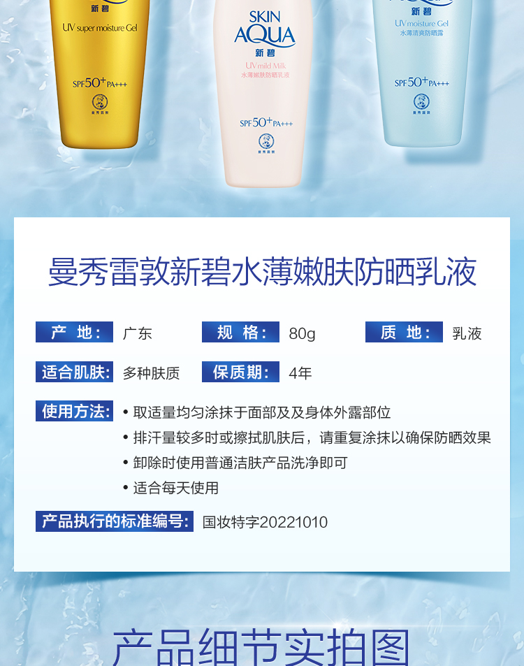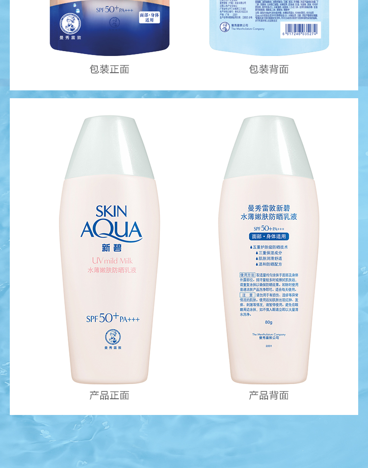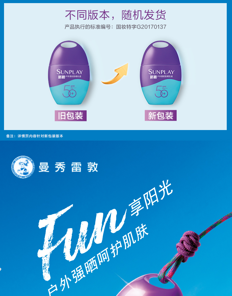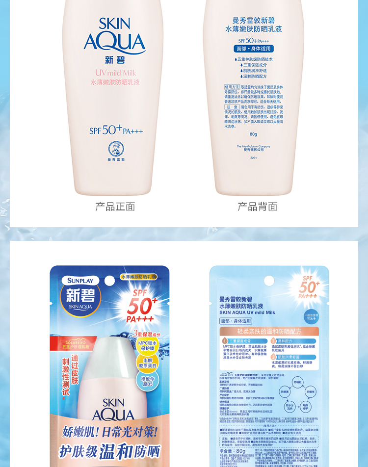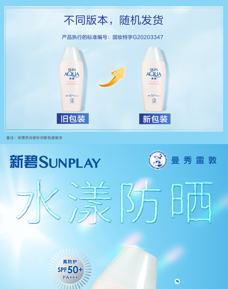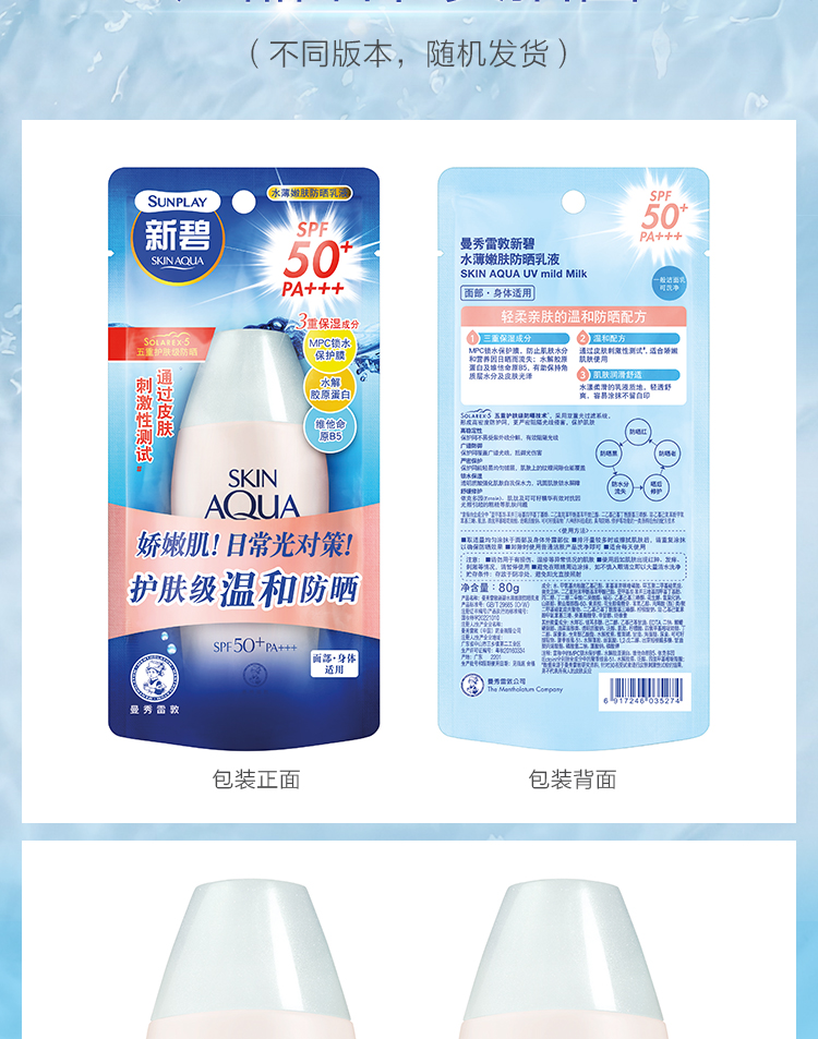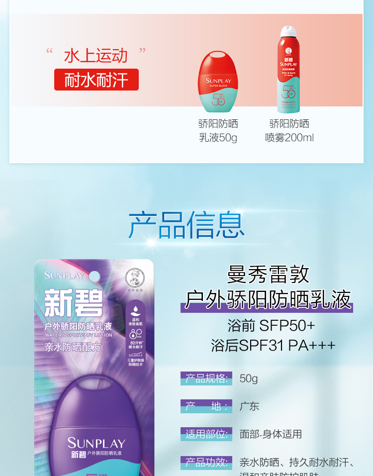 曼秀雷敦新碧户外骄阳防晒乳液(抗光老化) 50g/水薄嫩肤防晒乳液 80g