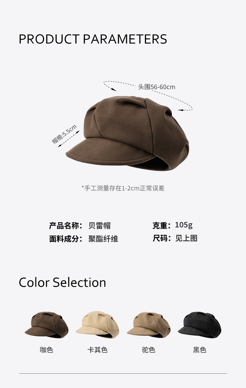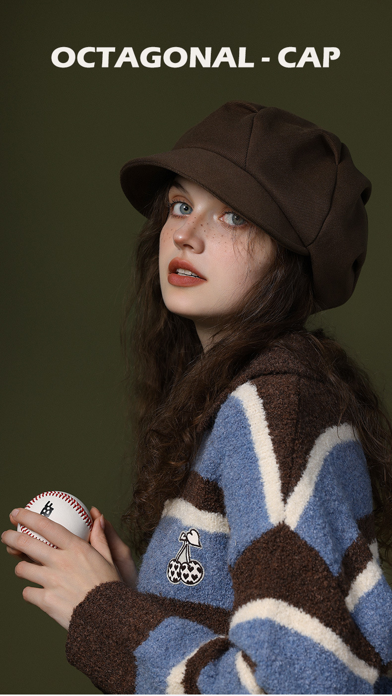 秋冬季新款帽子女士法式复古贝雷帽画家帽日系百搭显脸小八角帽
