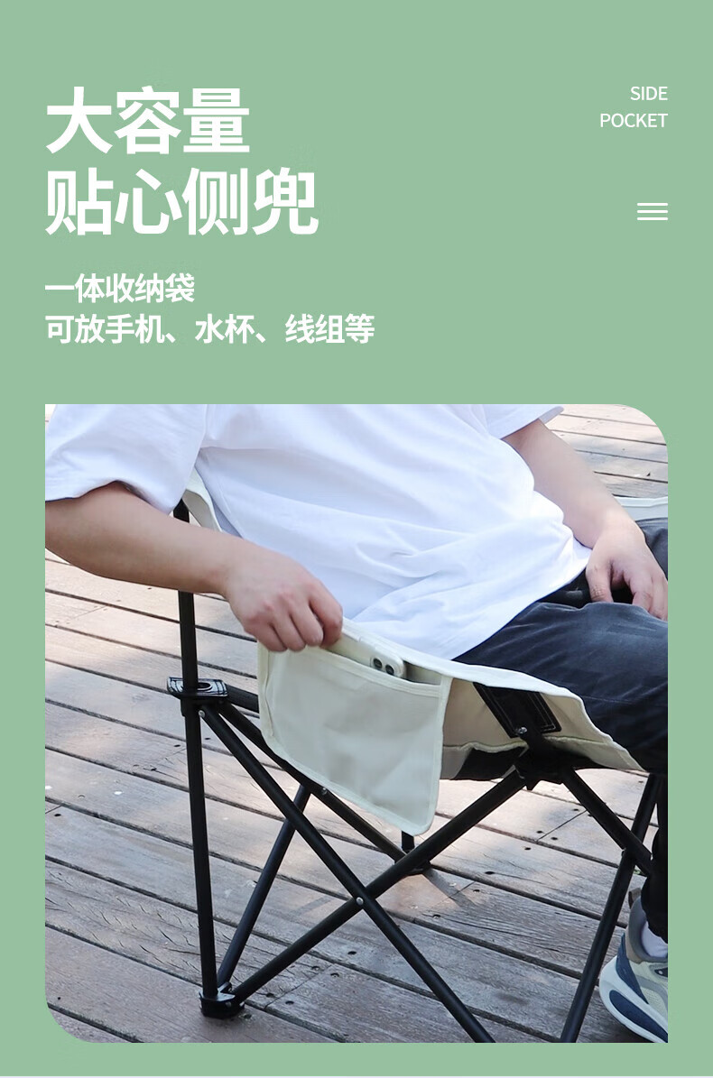 【多样屋专柜】西屋月亮椅野餐户外折叠椅子便携钓鱼露营装备沙滩椅 卡其色*1把