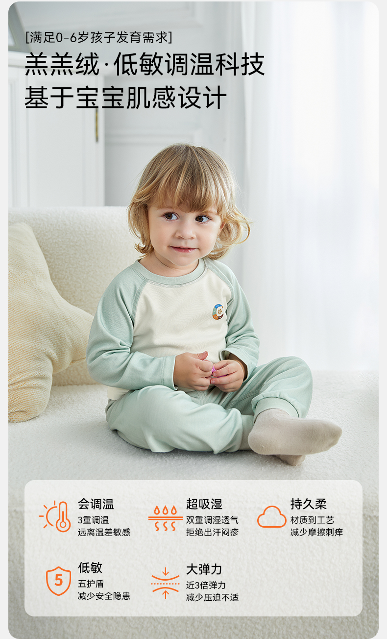 【宝宝服饰】嫚熙羊毛发热德绒保暖内衣男女童睡衣新款秋冬季新宝宝家居服套装